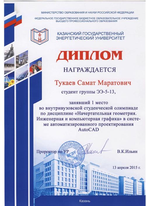 Первое место - Тукаев Самат Маратович, гр. ЭЭ-5-13;