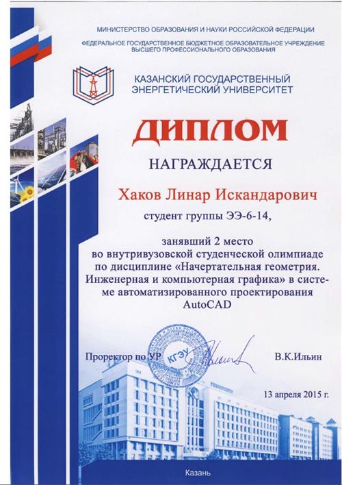 Второе место - Хаков Линар Искандарович, гр. ЭЭ-6-14