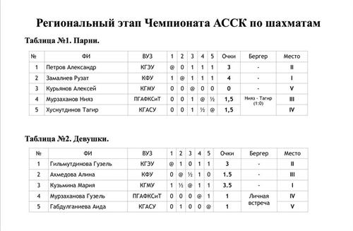 Участвовало 5 ВУЗов Республики: КГЭУ, КФУ, КГМУ, КГАСУ и ПГАФКСиТ. парни и девушки играли отдельно по круговой системе с контролем времени по 15 минут.