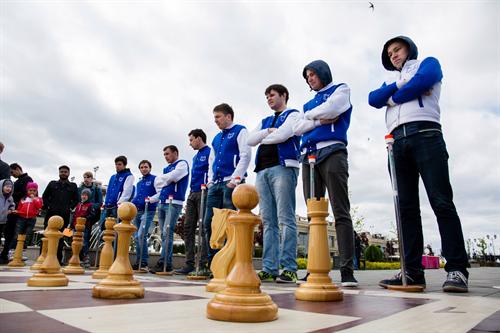 Чесбол – разновидность коллективной игры в шахматы. Отличием чесбола от классических шахмат является то, что в игре на доске одновременно участвует 16 человек: 2 команды по 8 игроков. Каждому игроку выделена 1 вертикаль, с которой он может делать ходы.