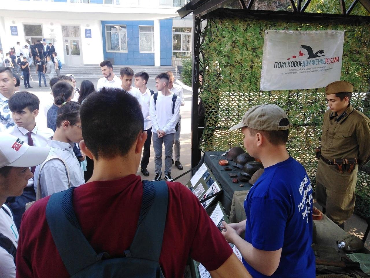 1 сентября, в День знаний, бойцы поискового отряда совместно с директором музея КГЭУ Рафилем Загыртдиновым организовали передвижную экспозицию для студентов, абитуриентов, работников и гостей энергоуниверситета. В рамках экспозиции ребята рассказали о деятельности поискового отряда КГЭУ "Поисковая Тропа", о предстоящей экспедиции в район д. Мясной Бор, а также о реконструкторском движении.