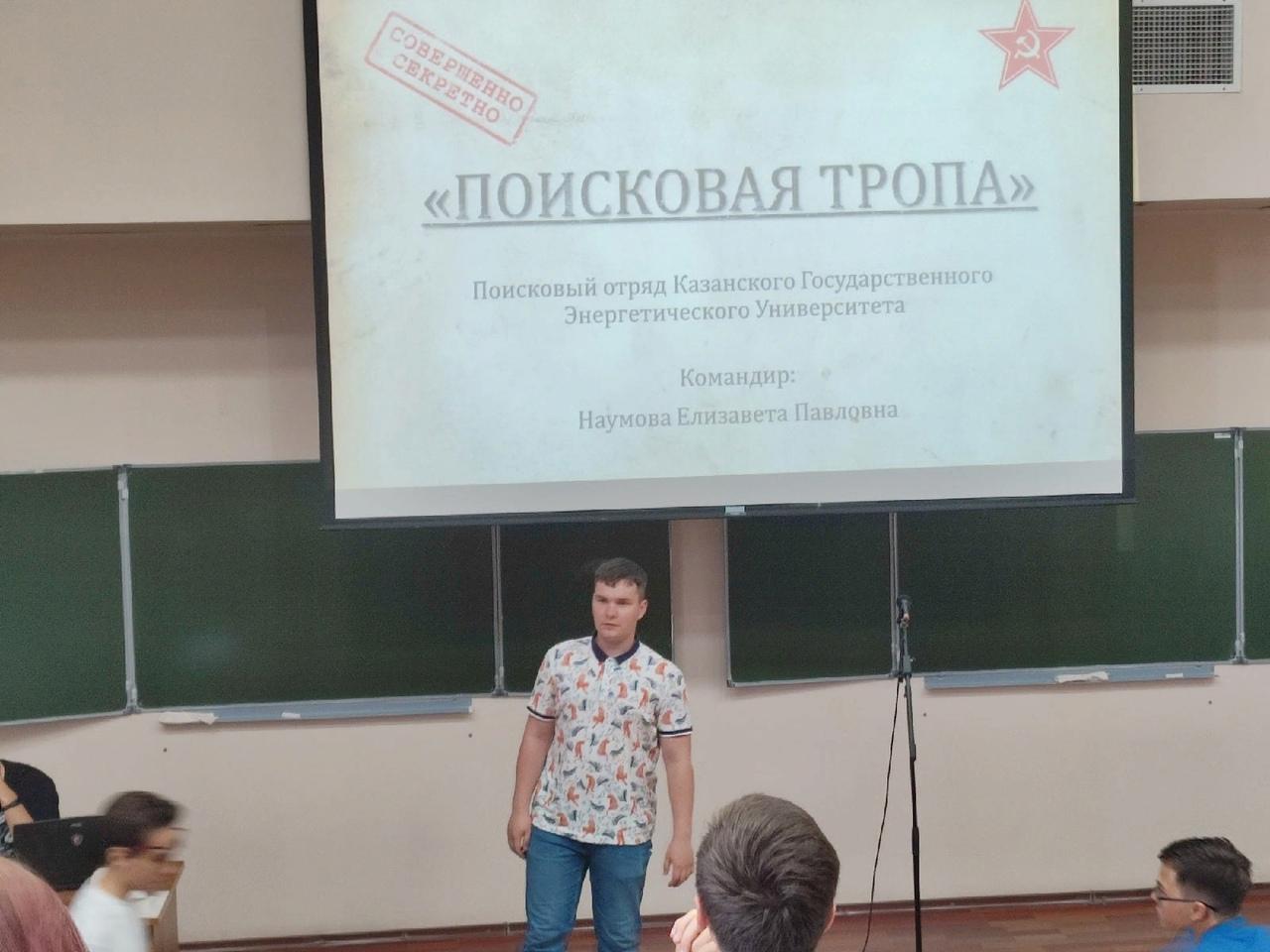 В рамках подготовки к началу учебного года 29 августа бойцы поискового отряда КГЭУ "Поисковая Тропа" приняли участие во встрече с тьюторами будущих учебных групп первокурсников. На встрече был озвучен план мероприятий поискового отряда и информация необходимая для передачи первокурсникам.