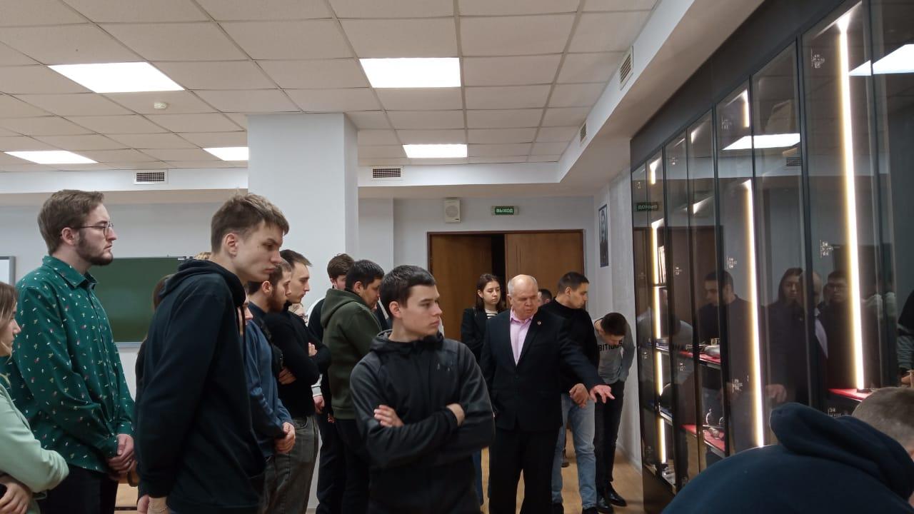 Студены внимательно слушали выступающих, задавали вопросы, связанные с поисковым движениям, а потом внимательно осмотрели артефакты, размещенные в витринах создаваемого Центра поисковых отрядов в аудитории Д-308.