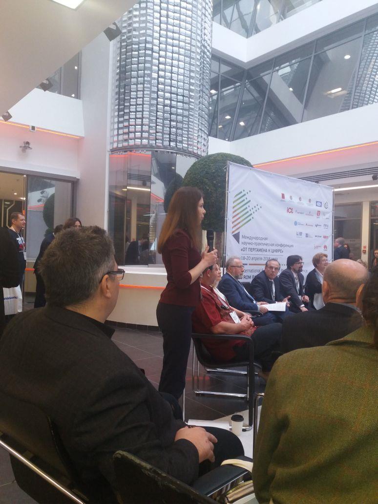 Темой для обмена мнениями явилась также подготовка специалистов в области управления документами. Ведущие эксперты, представители бизнеса и органов государственной власти говорили о потребности в специалистах-документоведах и архивистах, владеющих современными цифровыми технологиями управления документами и их архивного хранения. Профессор Г.А.Двоеносова рассказала о 20-летнем опыте подготовки документоведов в Казанском государственном энергетическом университете.