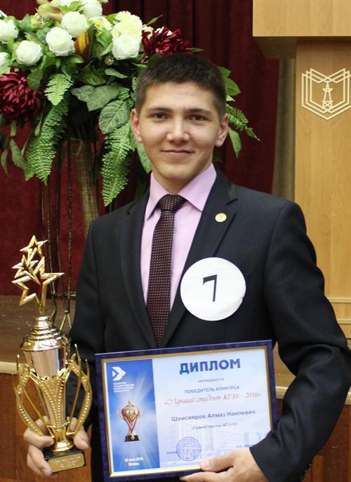 Абсолютным победителем конкурса «Лучший студент КГЭУ – 2016» стал Алмаз Шамсияров, студент 3 курса, группа АТ-1-13