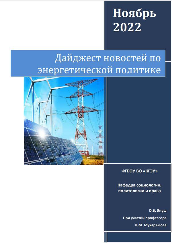 Вашему вниманию представлена ноябрьская подборка новостей и аналитических материалов об энергетической политике. Дайджест новостей подготовлен доцентом Ольгой Януш при содействии профессора, заведующего кафедрой СПП Наиля Мухарямова.