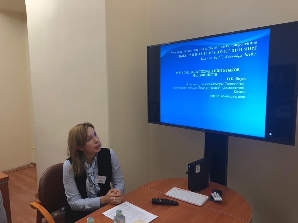 6 декабря в Центре изучения этнополитических и этнокультурных процессов Российского государственного гуманитарного университета состоялась Международная научно-практическая конференция «Языковая политика в России и мире», в работе которой приняли участие заведующий кафедрой Социологии, политологии и права Наиль Мидхатович Мухарямов и доцент кафедры Ольга Борисовна Януш.