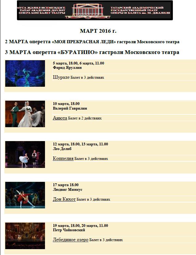 УВАЖАЕМЫЕ КОЛЛЕГИ! БИЛЕТЫ НА МАРТ 2016 ГОДА В ТЕАТР ОПЕРЫ И БАЛЕТА МОЖНО ЗАКАЗАТЬ УЖЕ СЕЙЧАС.
