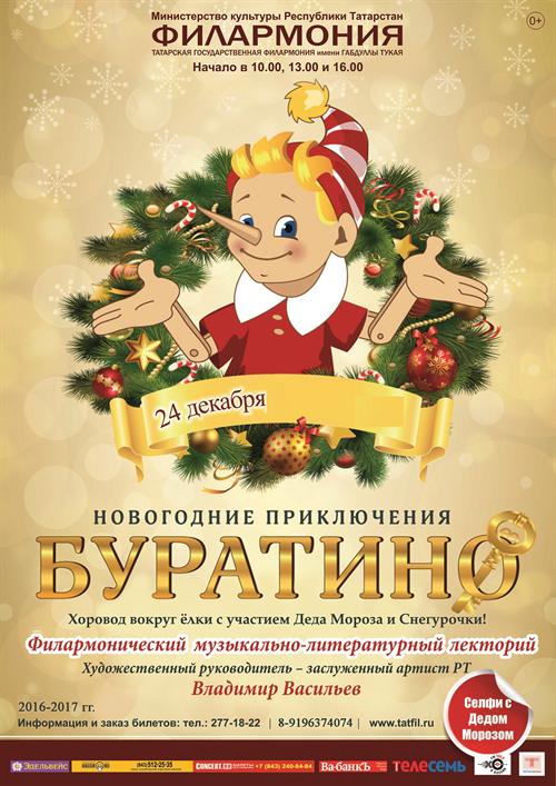 24 декабря в 13.00 Новогодние приключения Буратино (0+) билеты по 400 руб.