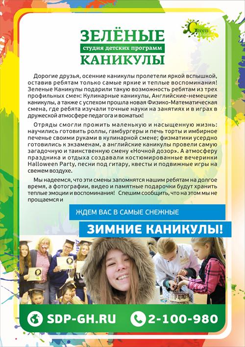 УВАЖАЕМЫЕ КОЛЛЕГИ! СТУДИЯ ДЕТСКИХ ПРОГРАММ "ЗЕЛЕНЫЕ КАНИКУЛЫ" ПРИГЛАШАЕТ ВАШИХ ДЕТЕЙ В ДЕТСКИЕ ЛАГЕРЯ ДЛЯ ПРОВЕДЕНИЯ НЕЗАБЫВАЕМЫХ КАНИКУЛ!