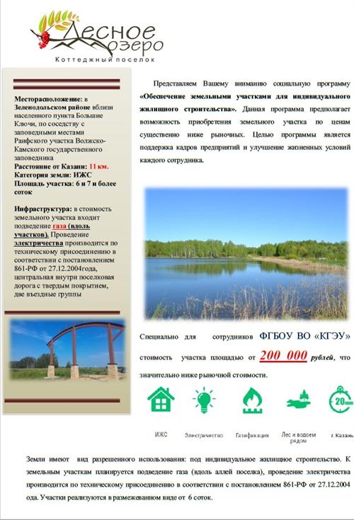 10 февраля в 13.30 (сразу после консультации по льготному кредитованию АК БАРС БАНК) в аудитории Д-302 состоится встреча с представителем девелоперской компании "МИК" с освещением информации по земельным участкам (специальное предложение для сотрудников КГЭУ).