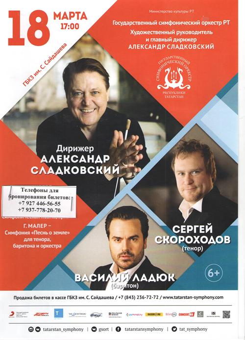ПРЕДЛАГАЕМ ВАШЕМУ ВНИМАНИЮ АФИШИ КОНЦЕРТОВ, ФЕСТИВАЛЕЙ ГОСУДАРСТВЕННОГО СИМФОНИЧЕСКОГО ОРКЕСТРА РТ ПОД УПРАВЛЕНИЕМ А.В. СЛАДКОВСКОГО С ФЕВРАЛЯ ПО ИЮНЬ 2017 ГОДА