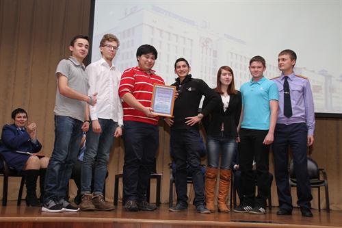 1 место. Команда студентов гр. ЭН-1-15 Саден Кочеров, Рафаэль Зарипов, Эдуард Герасимов, гр. ЭЭ-8-15 Раушан Миннегалеев, ИВТ-1-15 Арслан Кашапов, Альбина Кадырова.