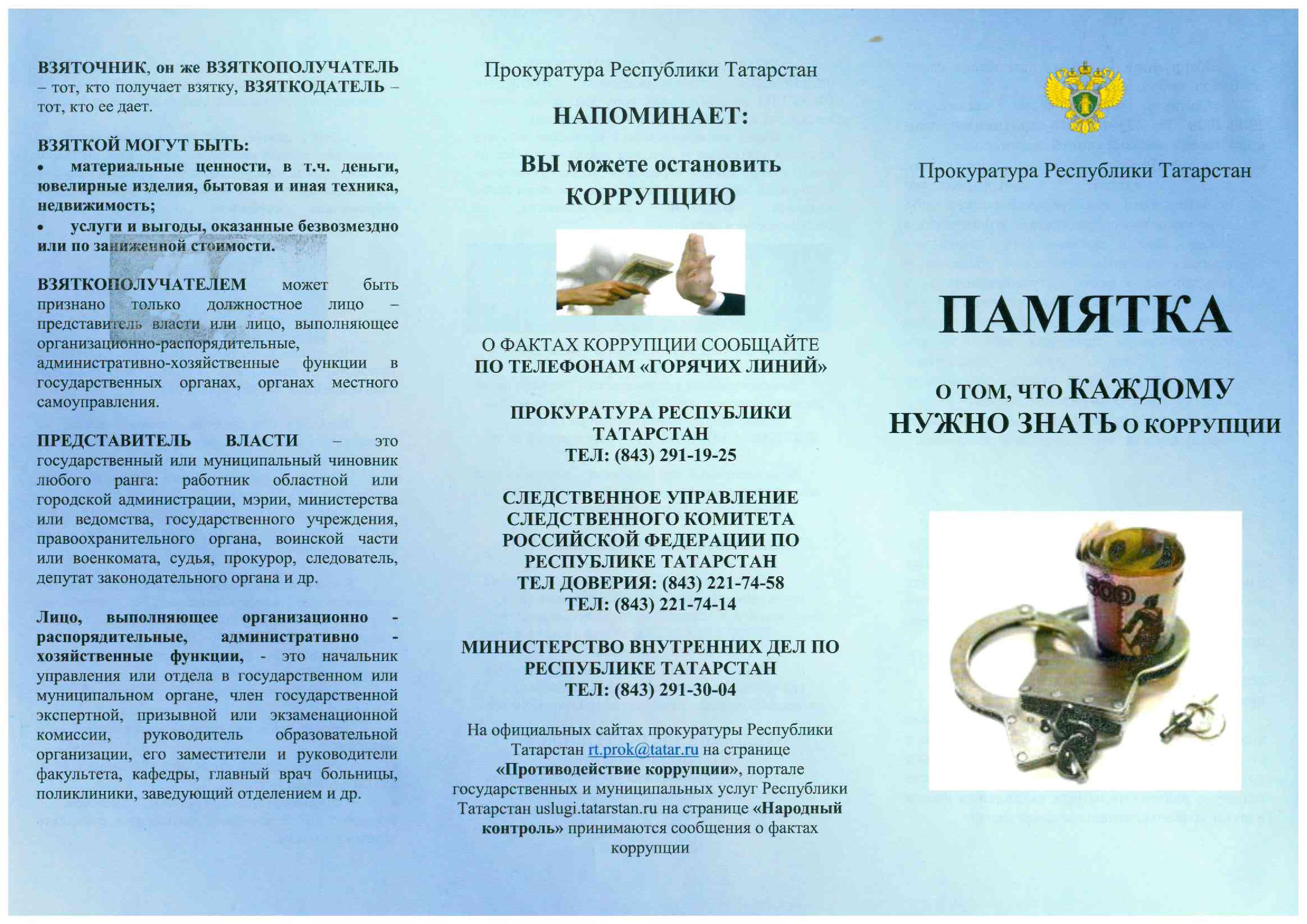 Прокуратура Кировского района города Казани предоставила Комиссии по противодействию коррупции ФБГОУ ВО «КГЭУ» официальные памятки «о том, что каждому нужно знать о коррупции».