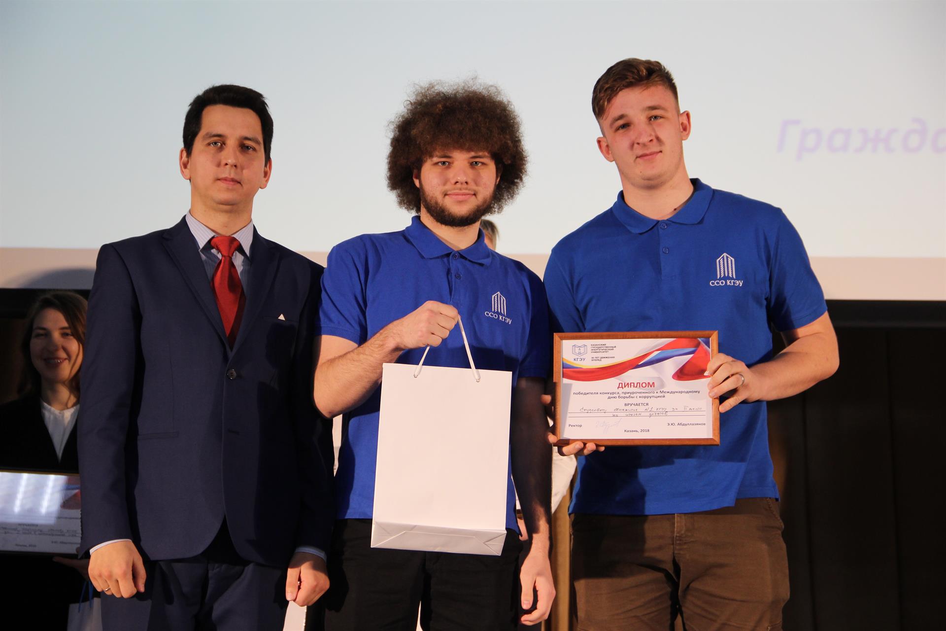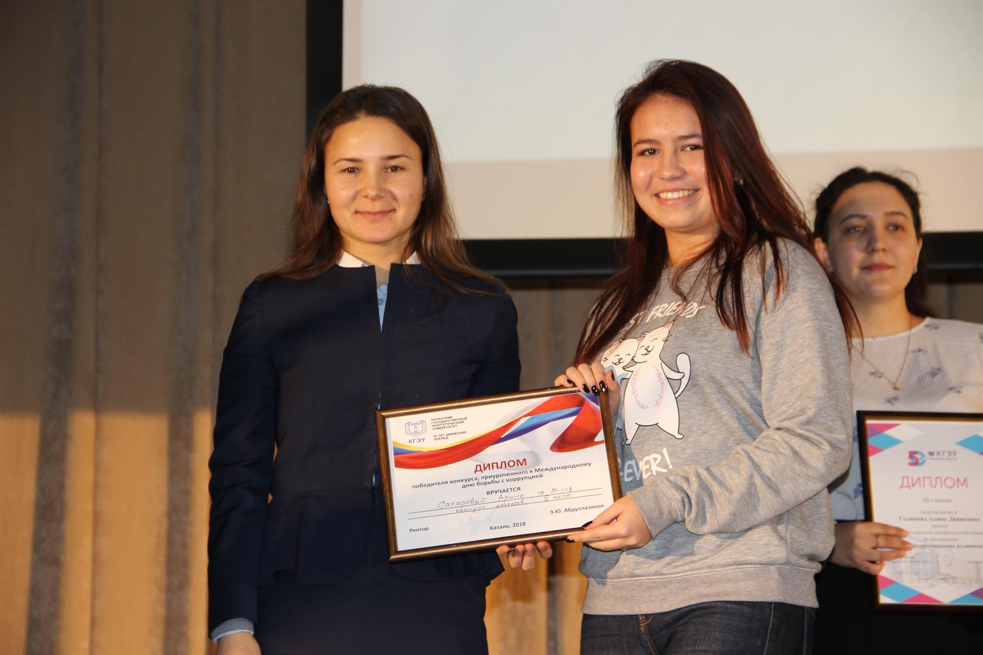 В ноябре в КГЭУ для активистов студенческих объединений образовательных организаций РТ прошел круглый стол на тему "Профилактика коррупционной деятельности в студенческой среде". Днем позже в зале ученого совета КГЭУ в интеллектуальной битве сразились передовые организации вуза. Мероприятие проводилось в рамках реализации антикоррупционной политики Республики Татарстан на 2015-2020 годы. Оно было направлено на просвещение студентов в сфере коррупции для того, чтобы избежать неосознанных ошибок.