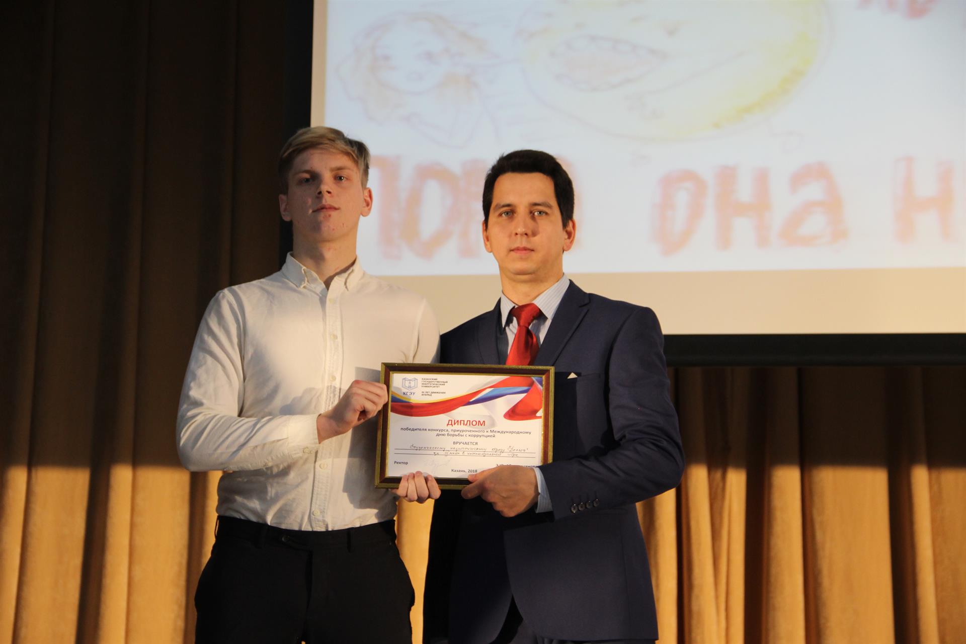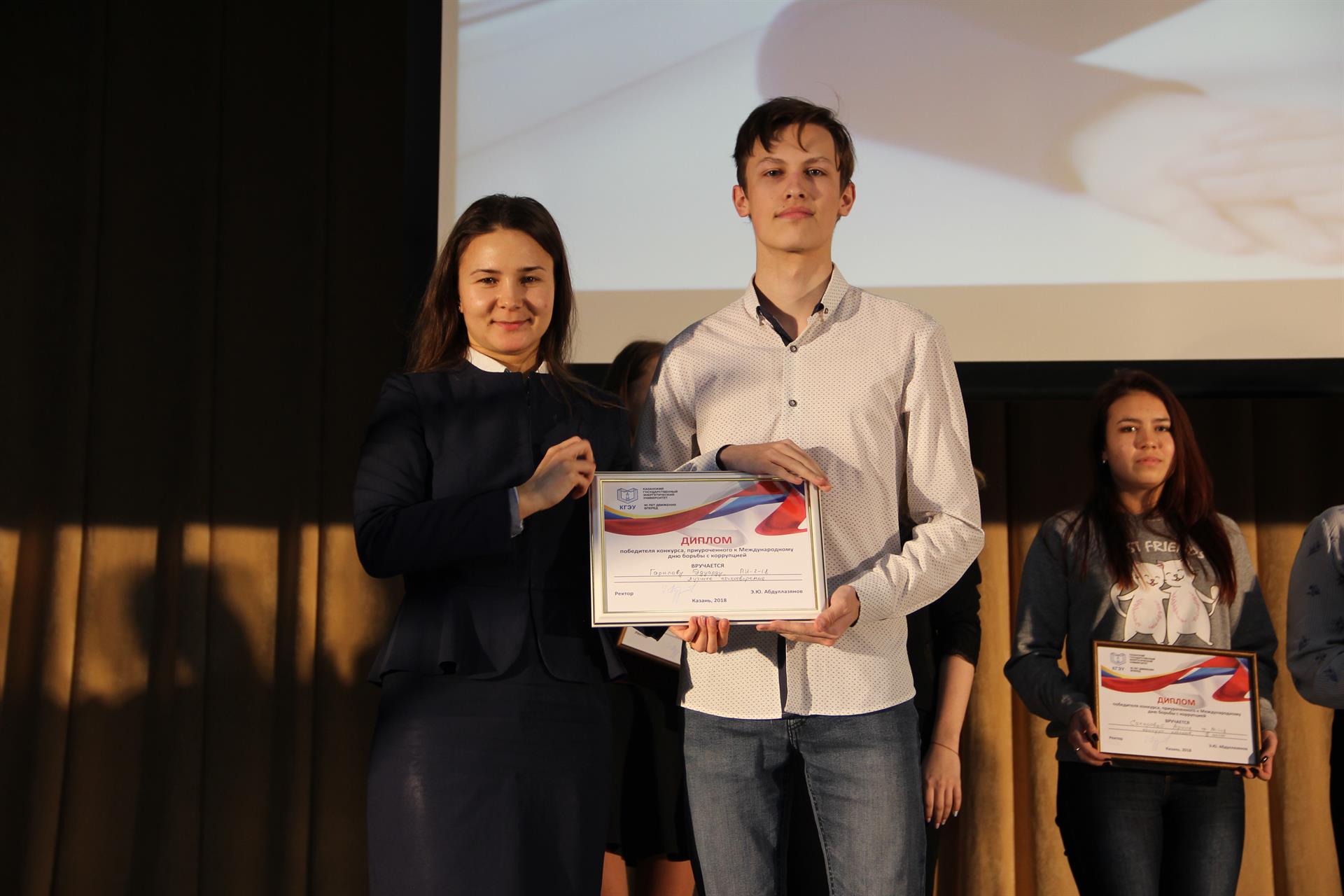 Почетным гостем стал глава администрации Кировского и Московского районов г.Казани Сергей Миронов. В качестве жюри были приглашены прокурор Кировского района г.Казани, старший советник юстиции Равиль Вахитов; руководитель СО по Кировскому району г.Казани Следственного управления Следственного комитета РФ по РТ, подполковник юстиции Сергей Новиков; старший помощник Прокурора РТ Ирина Петрова; начальник отдела по надзору за исполнением законодательства о противодействии коррупции Прокуратуры Татарстана Ринат Латыпов; старший специалист аналитического отдела информационно-аналитического управления Президента РТ Айсылу Гильмутдинова; начальник отделения отдела экономической безопасности и противодействия коррупции Управления МВД России по городу Казани Айнур Ягфаров.Кстати, в КГЭУ ведется активная работа по профилактике коррупционных действий. В вузе существует Антикоррупционная комиссия, а также Студенческая антикоррупционная комиссия. Ежегодно для сотрудников и студентов Казанского энергоуниверситета проводятся встречи с работниками прокуратуры, которые подробно рассказывают о последствиях коррупционного поведения, о противодействии коррупции.