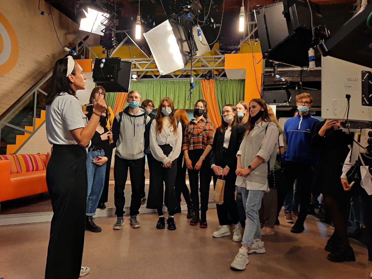 Мария Бойченко, студентка группы РСО-1-20: «Здорово быть по ту сторону экрана, недоступную обычным зрителям. Сидеть в студиях известных теле- и радиопередач, видеть себя в мониторах видеокамер, делать общие фотографии со своими одногруппниками, быть частью этой жизни – незабываемый опыт».
