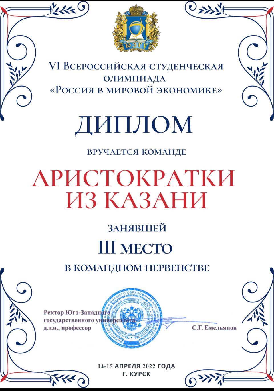 Команда студенток КГЭУ стала призером VI Всероссийской студенческой Олимпиады «Россия в мировой экономике».