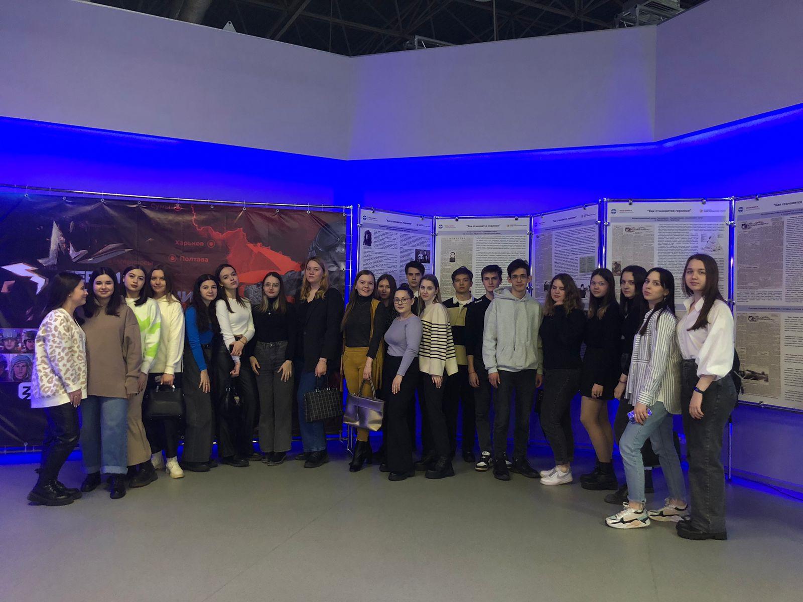 21 марта студенты 1 курса кафедры «Экономика и организация производства» под руководством доцента Лилии Мухаметовой и преподавателя Кристины Сорокиной посетили мультимедийную выставку «Герои спецоперации» в Историческом парке «Россия – моя история».