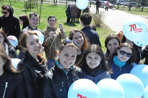 Под торжественную и патриотическую музыку все собравшиеся выпустили шары с символикой 70-й годовщины Победы в небо в знак памяти о Великом подвиге нашего народа.