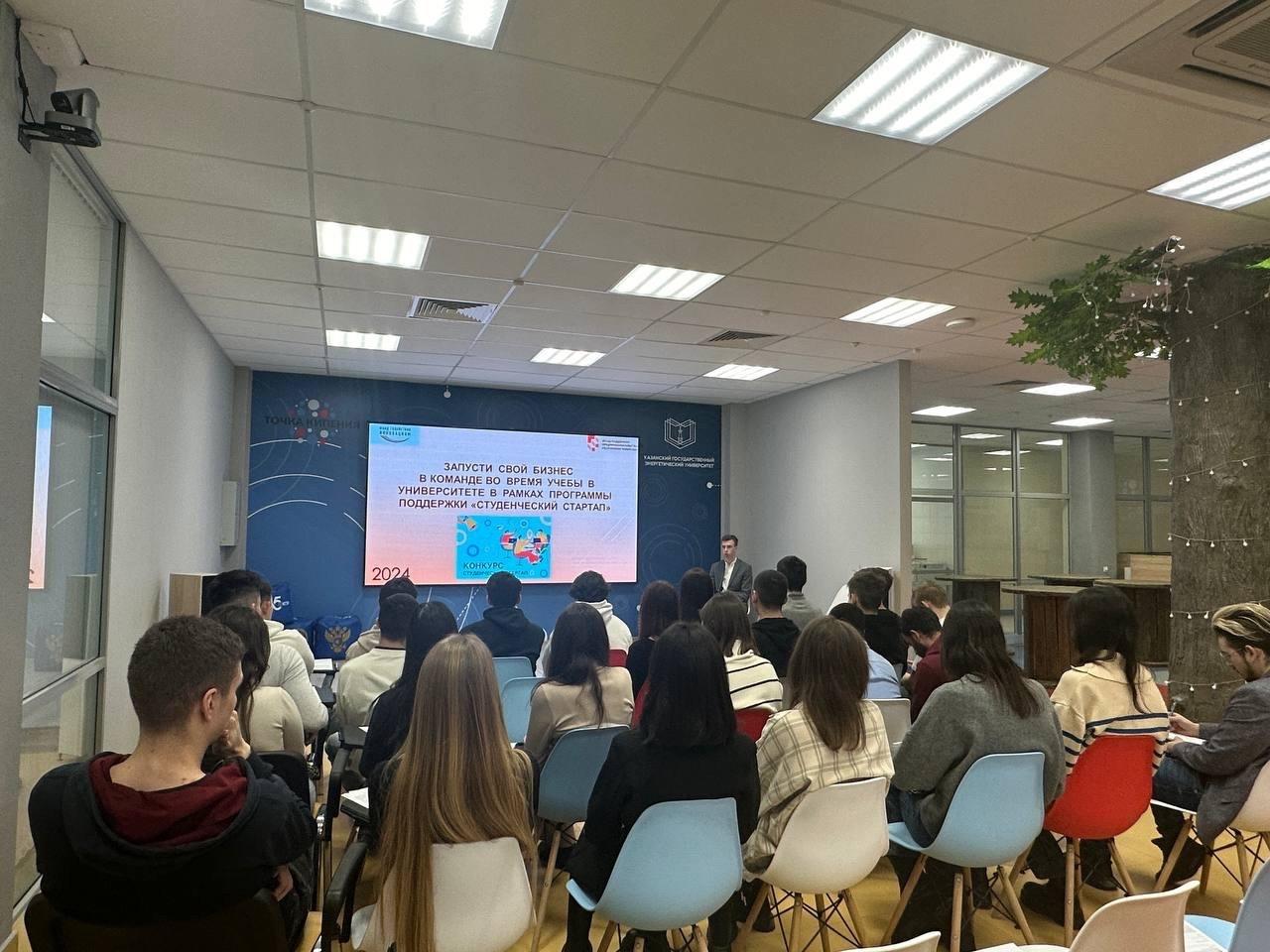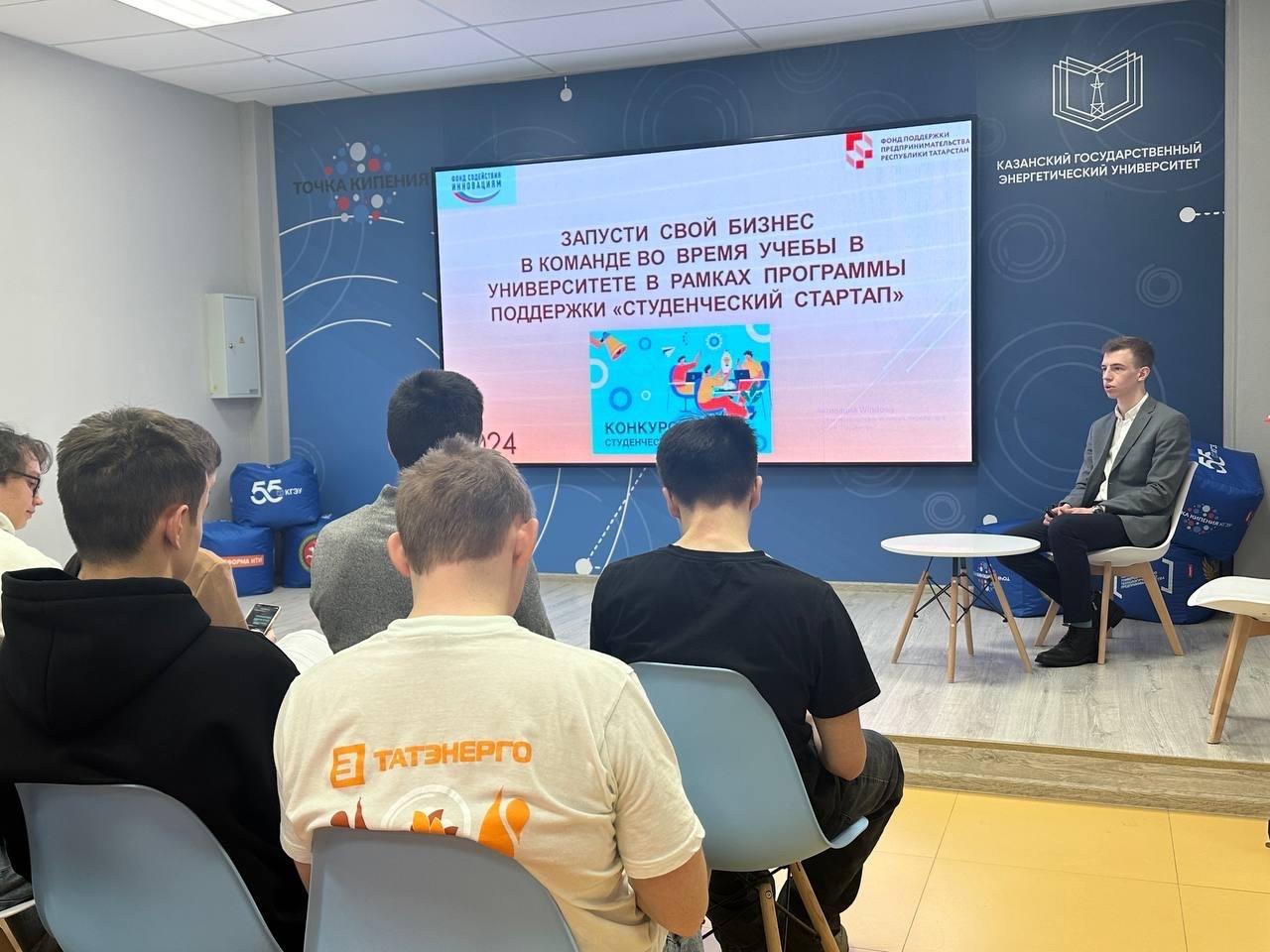 19 февраля в Предпринимательской точке кипения КГЭУ состоялась встреча студентов с руководителем Центра инноваций социальной сферы Фонда поддержки предпринимательства Республики Татарстан - Михаил Унтура по вопросам участия в программе «Студенческий стартап».