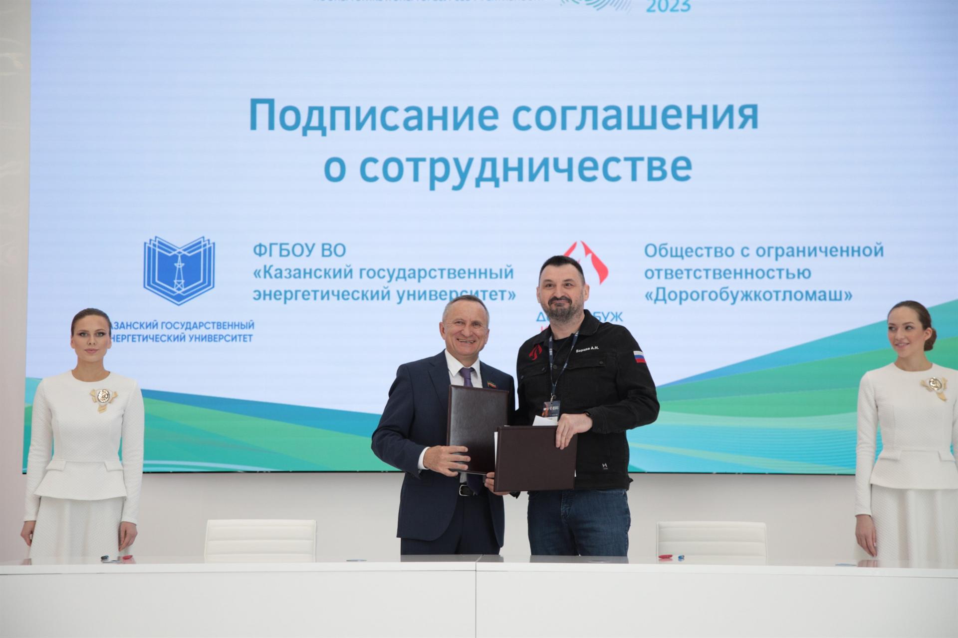 В рамках работы ТЭФ-2023 состоялось подписание соглашения о сотрудничестве между КГЭУ и компанией ООО «Дорогобужкотломаш». Со стороны университета документ заверил ректор Эдвард Абдуллазянов, со стороны партнеров – первый заместитель генерального директора Александр Борцов. А также, состоялось подписание соглашения о сотрудничестве между КГЭУ и компанией ООО «TeakRussia». Соглашение КГЭУ с ООО «TeakRussia» подписали ректор Эдвард Абдуллазянов и директор компании Павел Страшненко.