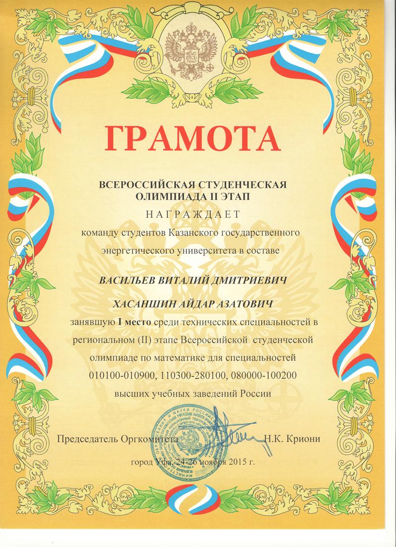 ПОЗДРАВЛЯЕМ КОМАНДУ ЭНЕРГОУНИВЕРСИТЕТА С УСПЕШНЫМ ВЫСТУПЛЕНИЕМ НА ВСЕРОССИЙСКОЙ СТУДЕНЧЕСКОЙ ОЛИМПИАДЕ ПО МАТЕМАТИКЕ (II ТУР), ПРОХОДИВШЕЙ 24-26 НОЯБРЯ В УФЕ.