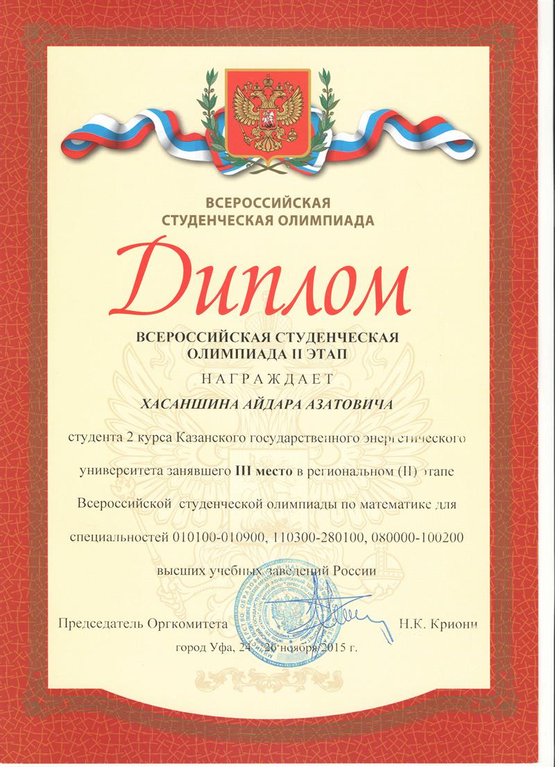 • Яхшыгулова Регина, группа ЭКП-7-14, диплом участника олимпиады;