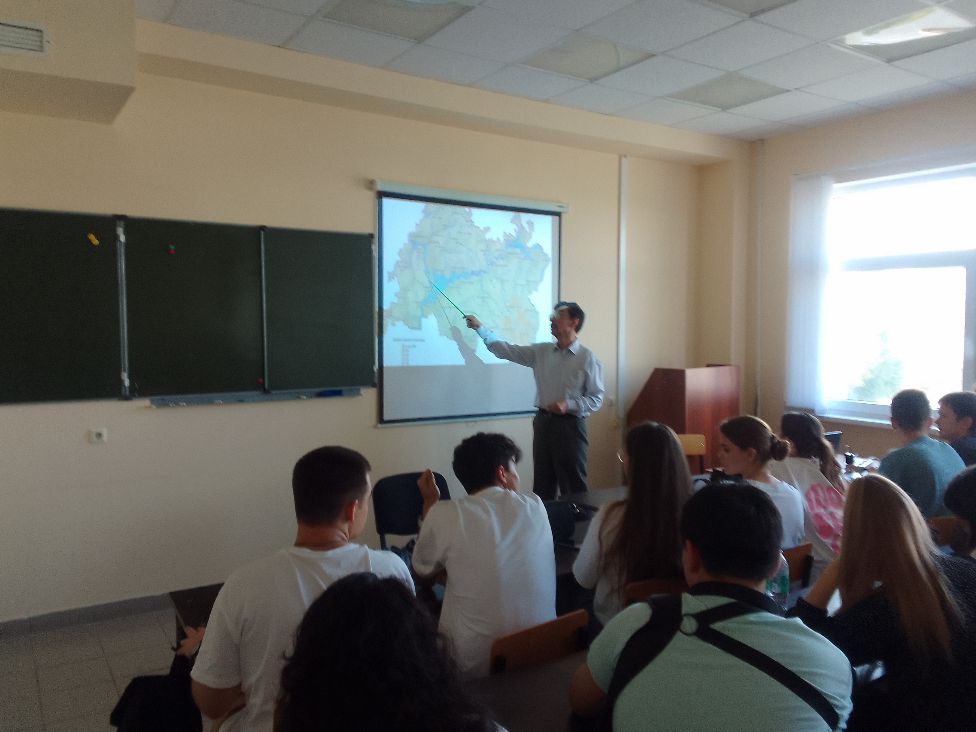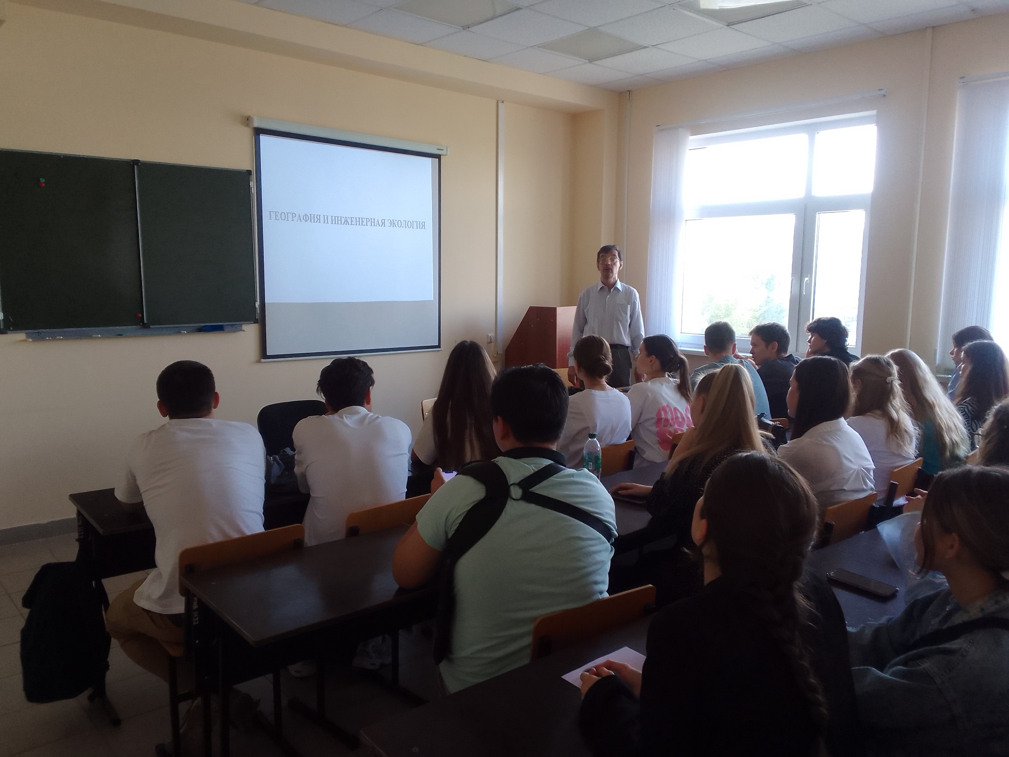 В Рамках Всероссийской просветительской Акции Русского географического общества "НЕУРОК географии" 12.09.2024 старшим преподавателем кафедры Дылевским В.Е. была прочитана лекция "География и инженерная экология" для студентов кафедры.