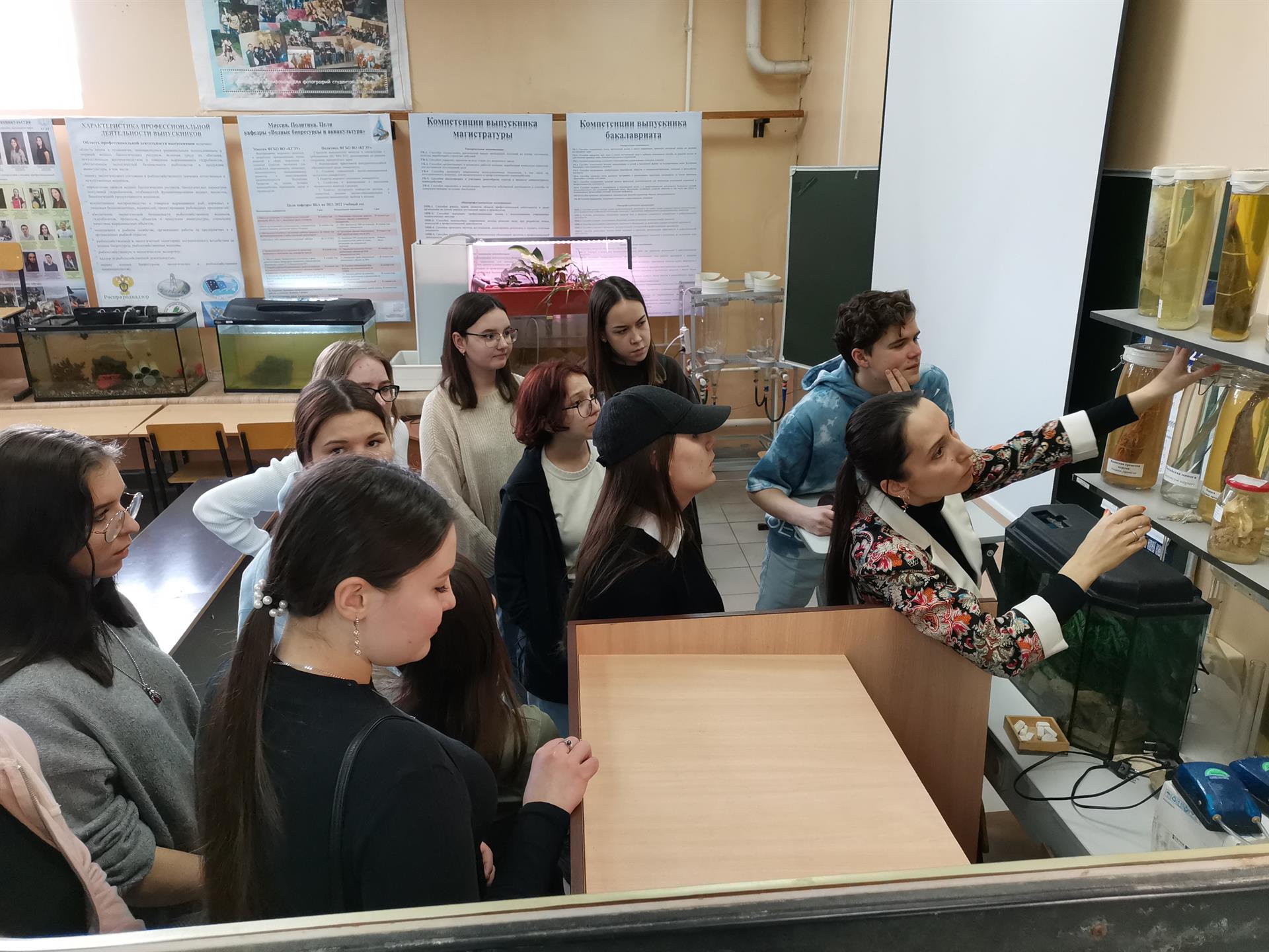 Ребята вместе с классными руководителями познакомились с работами кафедры, живыми объектами и препаратами, а так же возможностями и требованиями по поступлению в КГЭУ на направление 35.03.08 - Водные биоресурсы и аквакультура.