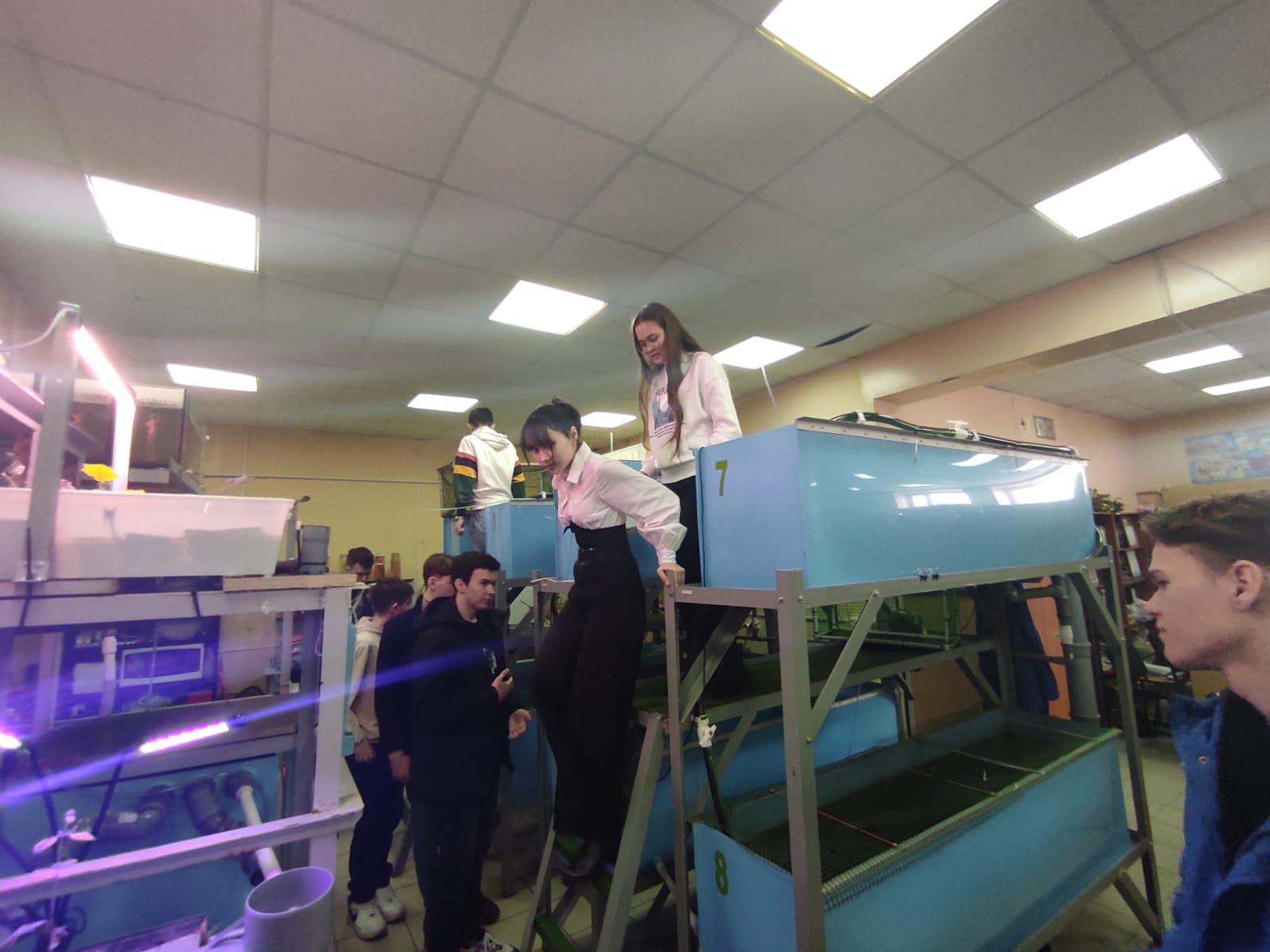 Ребята вместе с учителями лицея познакомились с работами кафедры, живыми объектами и препаратами, а так же возможностями и требованиями по поступлению в КГЭУ на направление 35.03.08 - Водные биоресурсы и аквакультура.