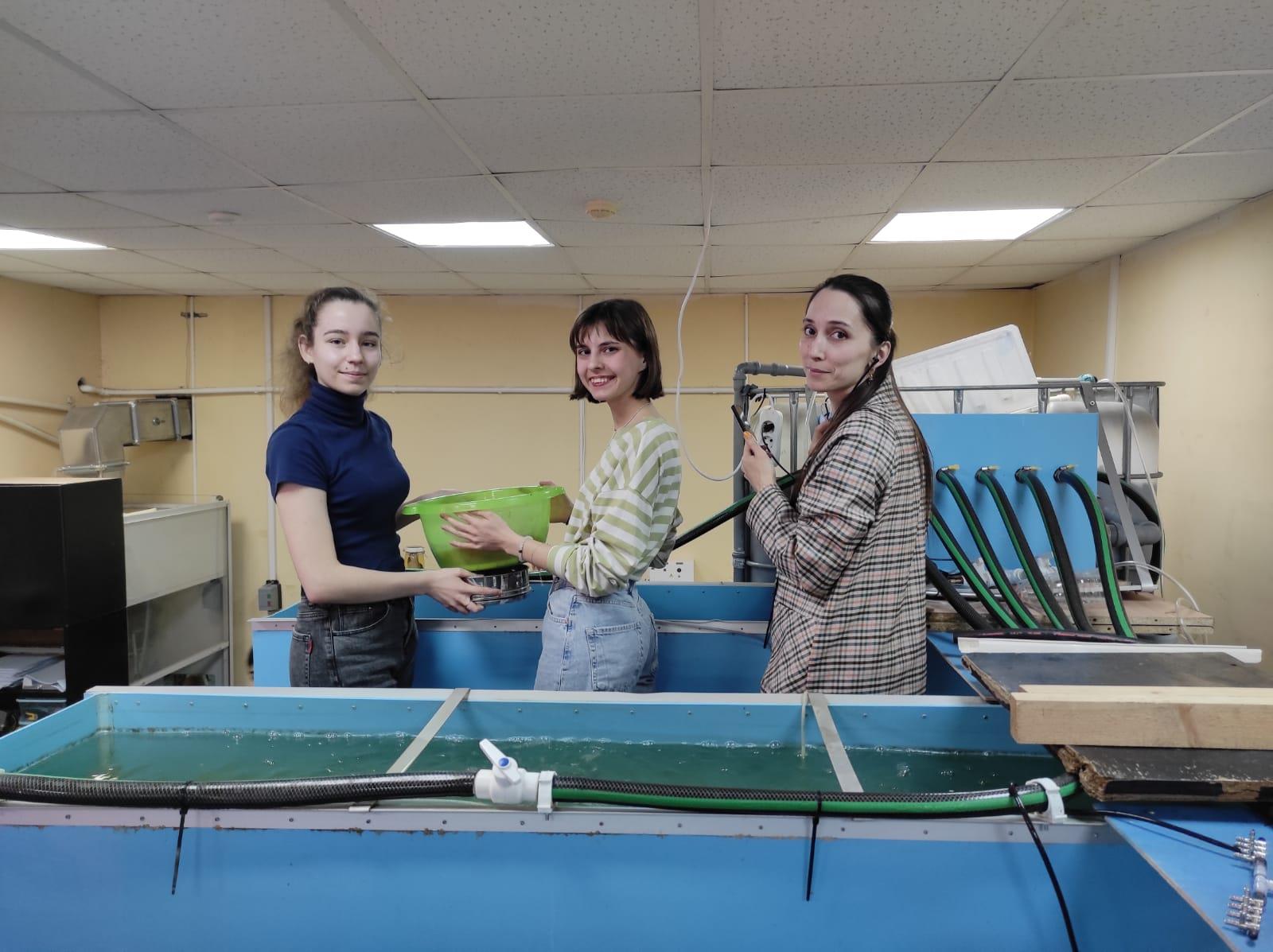 На прошедшей неделе обучающиеся знакомились с методами и оборудованием для отбора гидрохимических и гидробиологических проб. На практиках проводили анализ воды в рыбоводных установок кафедры, отбирали пробы и определяли гидробионтов.