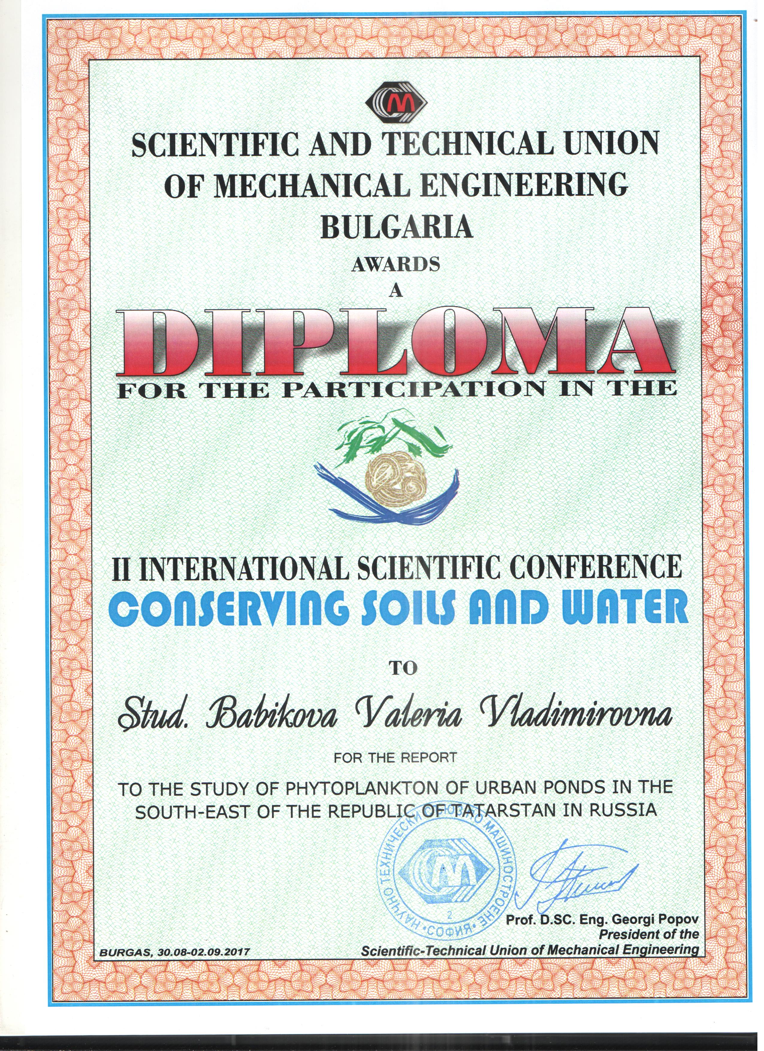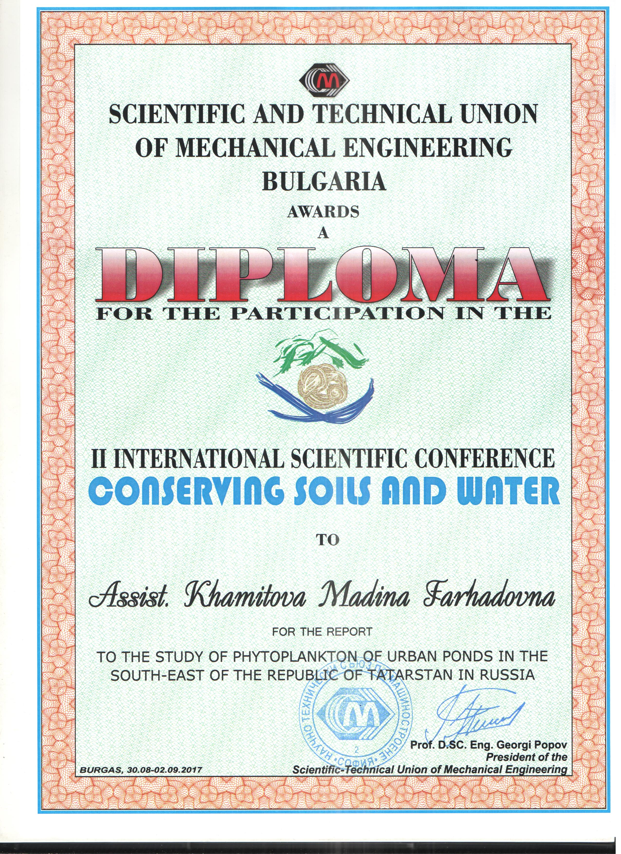 Доцент кафедры ВБА Бариева Фания Фауатовна, совместно со старшим преподавателем кафедры ВБА Хамитовой Мадиной Фархадовной и студентом гр. ВБА-1-14 Бабиковой Валерией приняли участие во II международной научной коференции "Conserving soils and water", проходящей в Болгарии.