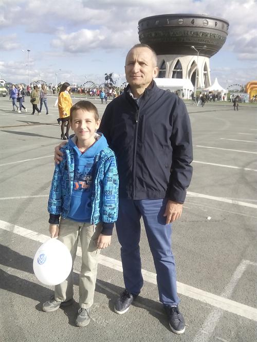 Будущий студент КГЭУ (Олег, мама - зав.лаб. Гарявина Светлана Александровна) от каф. МВТМ с ректором Абдуллазяновым Эдвардом Юнусовичем.
