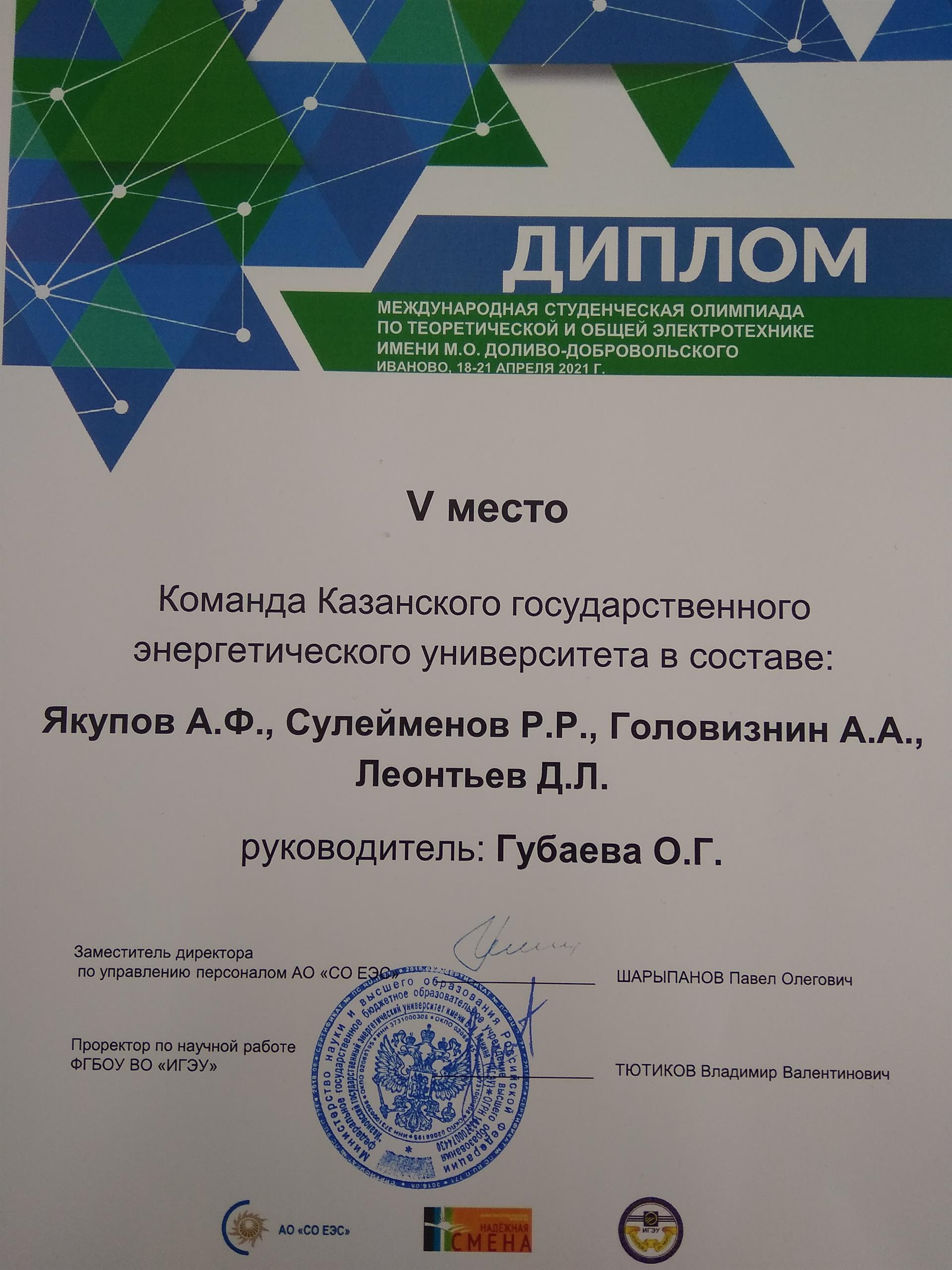 20 апреля 2021 г. в Ивановском государственном энергетическом университете прошла Международная студенческая олимпиада по теоретической и общей электротехнике имени М.О. Доливо-Добровольского "Электротехника - 2021".