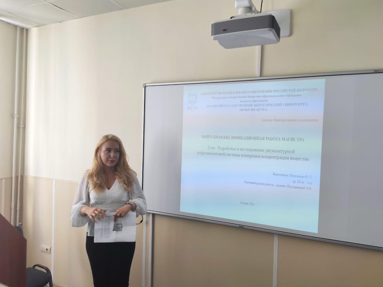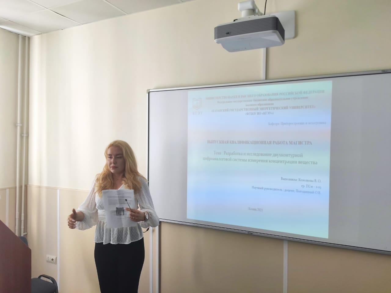 В стенах ФГБОУ ВО КГЭУ 1.07.2021 прошла защита выпускных квалификационных работ магисторов по направлению 12.04.01 "Приборостроение"