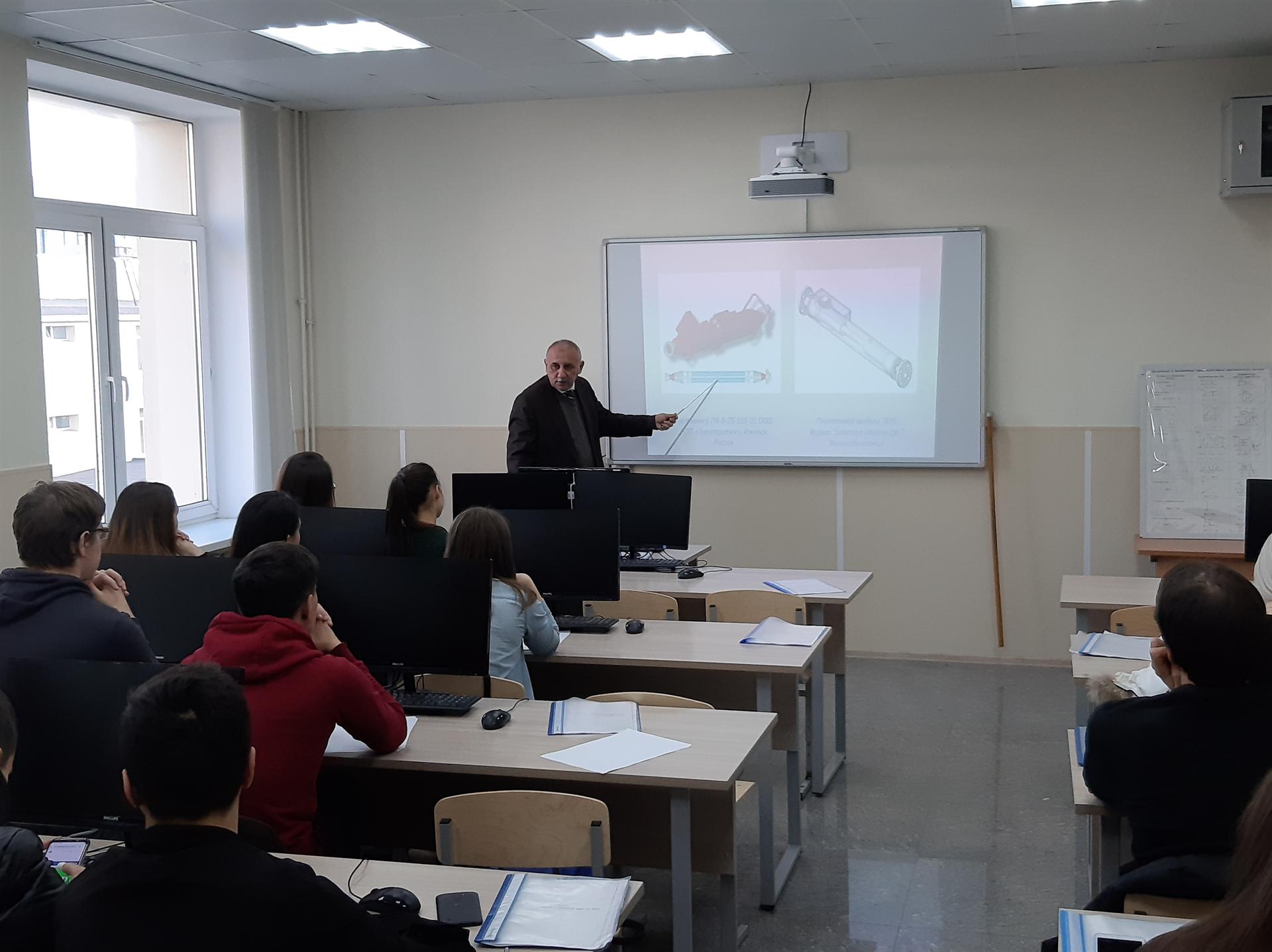 Заведующим кафедрой электромеханики Сумгаитского государственного университета (Азербайджан), к.т.н. Т.К. Гусейновым и заведующим кафедрой Электротехники и энергетики, д.ф.н. Н.М. Гаджибалаевым были прочитаны обзорные лекции для студентов старших курсов и молодых ученых кафедры «Приборостроение и мехатроника» КГЭУ на тему «Вибрационные плотномеры жидкости» и «Аппроксимация кривой намагничивания».