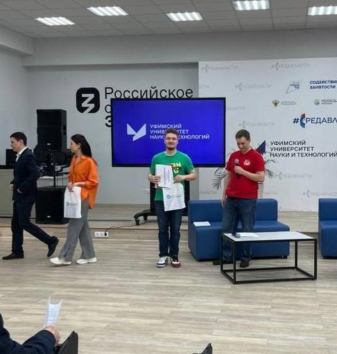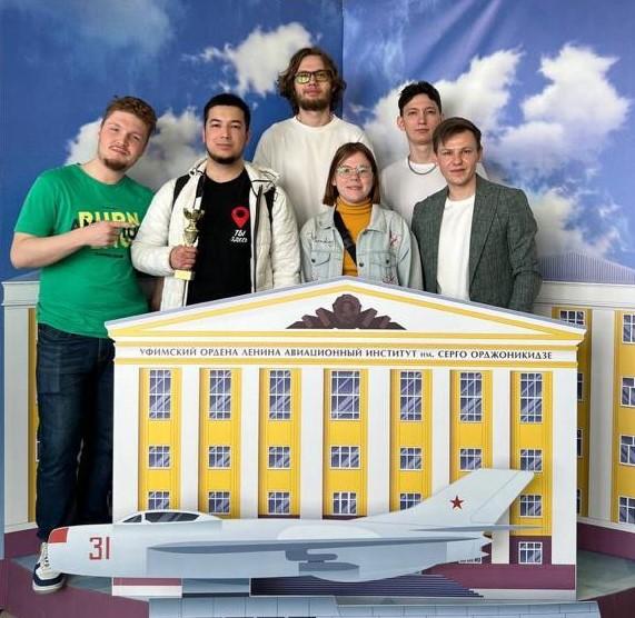 Широбоков Е.А. (группа Э-1-20), Арманшин Р.Ф. (группа Э-1-20); Дударева С.И. (группа Э-1-19); руководитель команды Балобанов Р.Н. (доцент кафедры ЭС), Садрисламов А.М. (группа Э-1-19); Таепов Э.Ф. (группа Э-1-20)