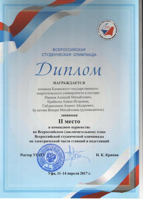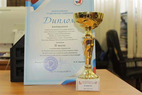 Олимпиада проходила в столице Башкортостана, где студенты нескольких десятков вузов РФ смогли посоревноваться в знании электрической части станций и подстанций. Команда кафедры "Электрические станции им. В.К. Шибанова" приняла  в олимпиаде активное участие и заняла II место в командном первенстве. В состав команды вошли студенты группы Э-1-13 Габдрахимов Азамат, Иванов Алексей и Крайкоза Алина.