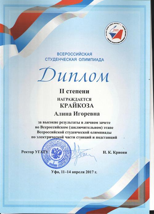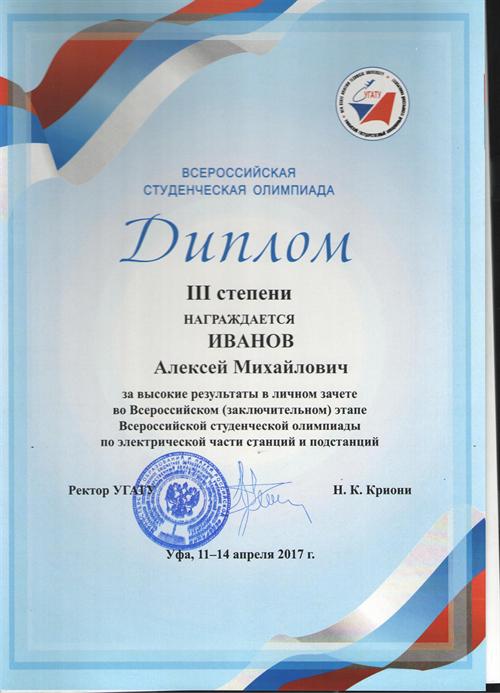 СЕРЕБРО ОЛИМПИАДЫ СТУДЕНТОВ КАФЕДРЫ "ЭЛЕКТРИЧЕСКИЕ СТАНЦИИ ИМ. В.К. ШИБАНОВА"