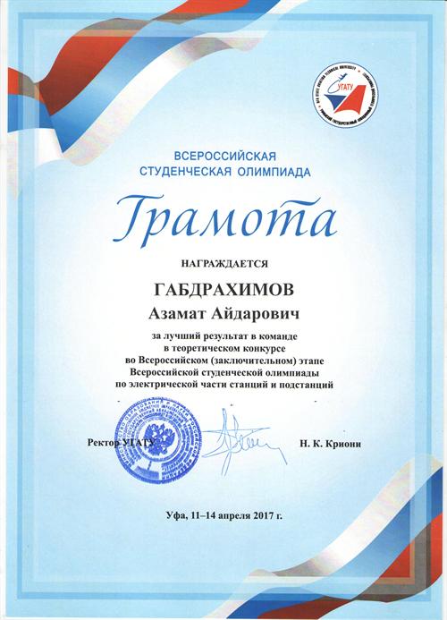 Габдрахимов Азамат был также отмечен грамотой за лучший результат в команде в теоретическом конкурсе.