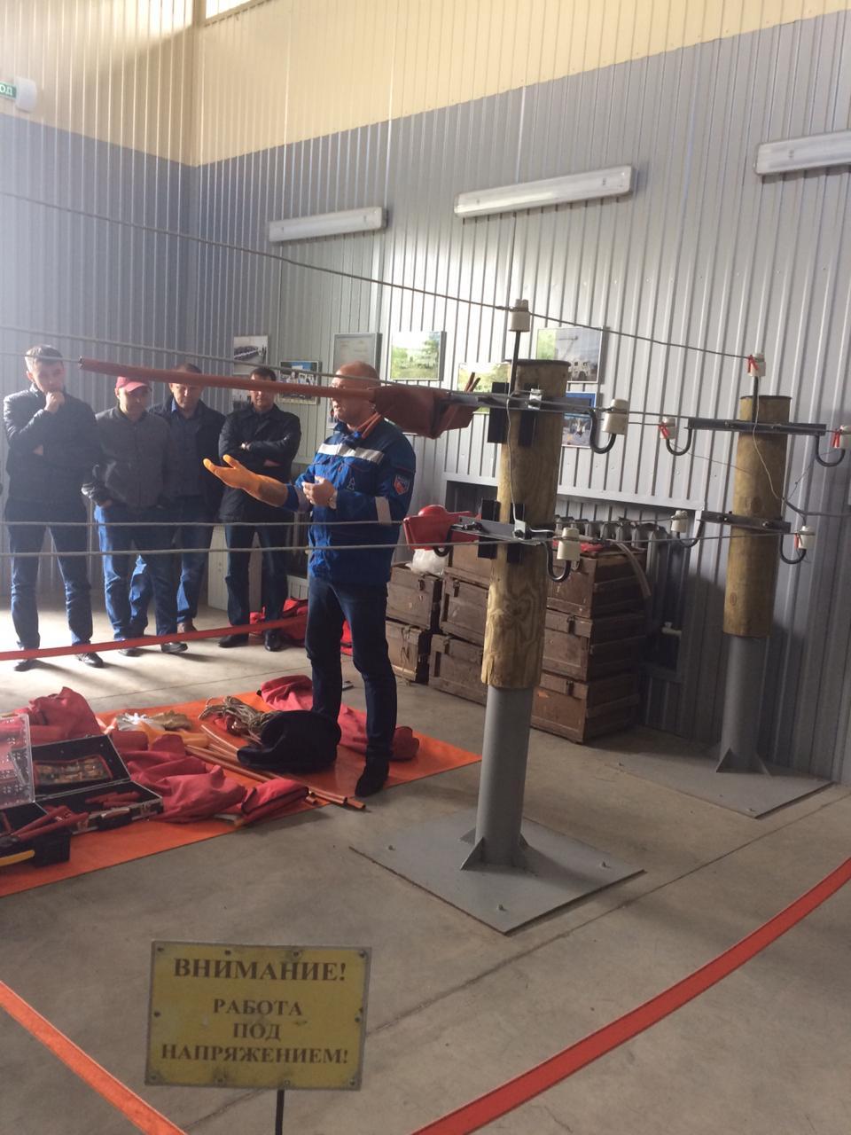 Местом второй экскурсии был полигон "Работы под напряжением" в городе Заинск. Там им рассказали и показали все премудрости работ под напряжением.