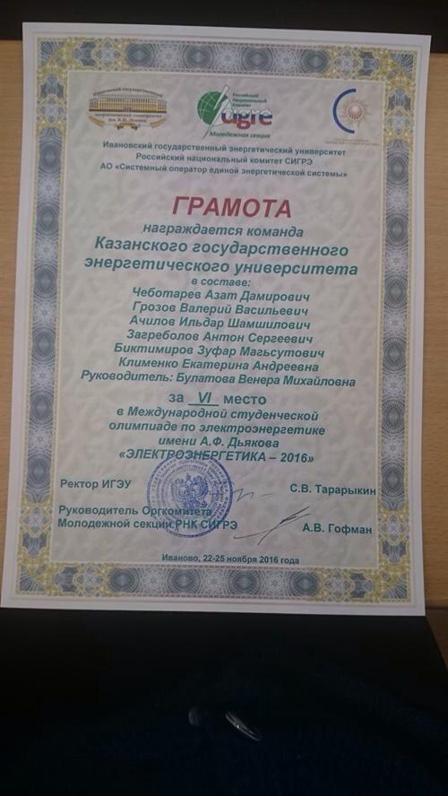 23 ноября 2016 года в Ивановском государственном энергетическом университете проходила международная олимпиада по электроэнергетике и электротехни