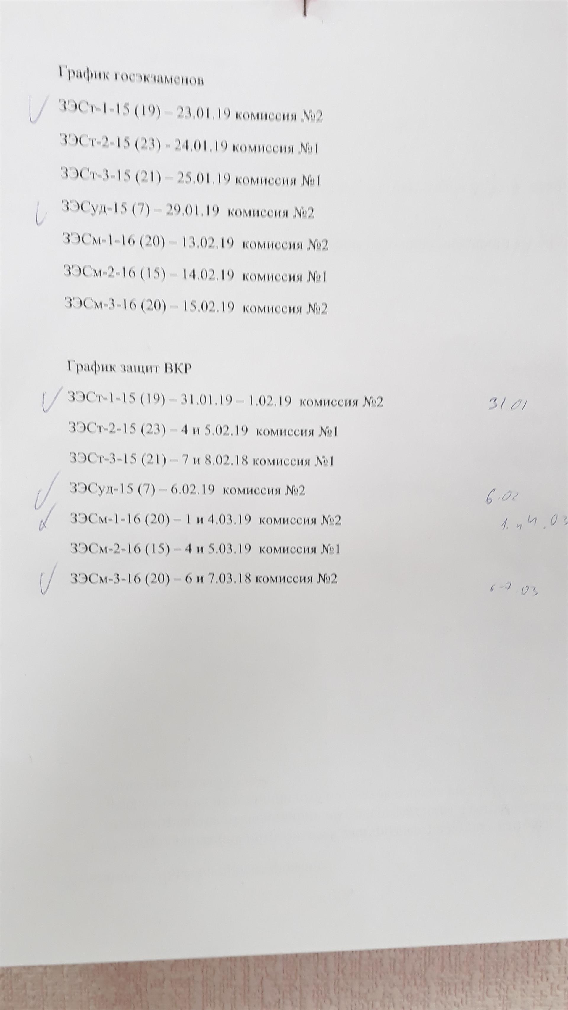 График защит ВКР на зиму 2019