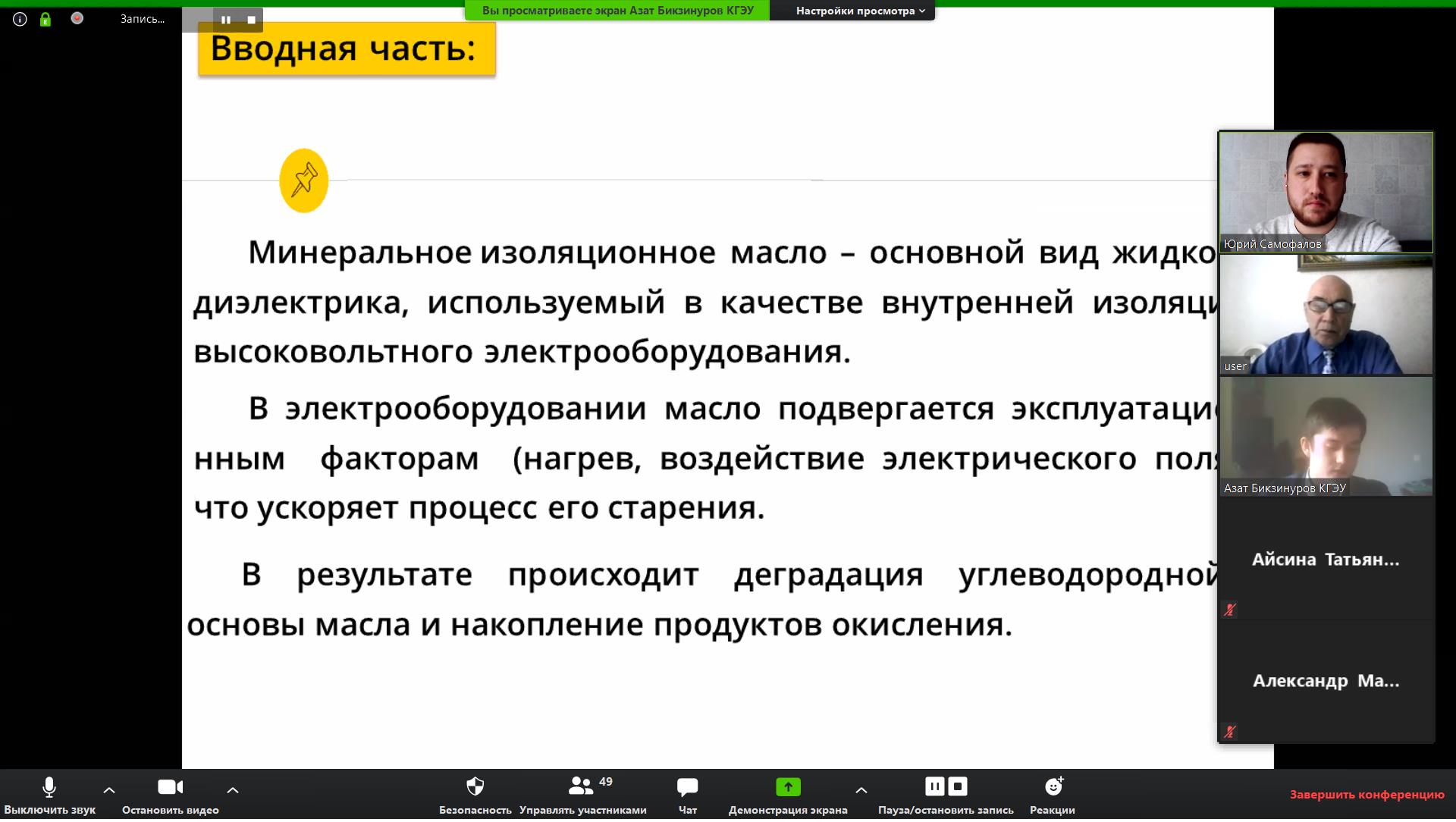 Участники онлайн-конференции выступали в порядке очереди по программе, включая микрофон и транслируя экран с презентацией выступления. На каждую отводилось 5 минут. После выступления участники и эксперты задавали вопросы выступающему, включив микрофон или воспользовавшись чатом Zoom.