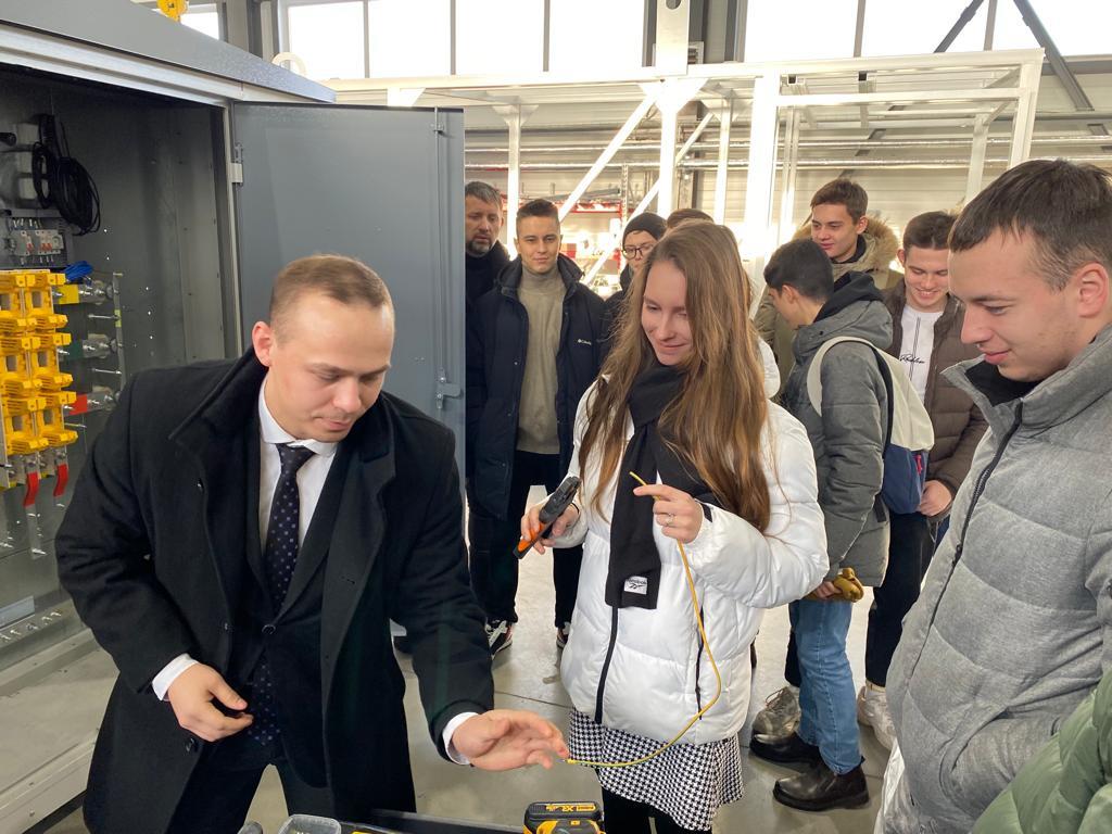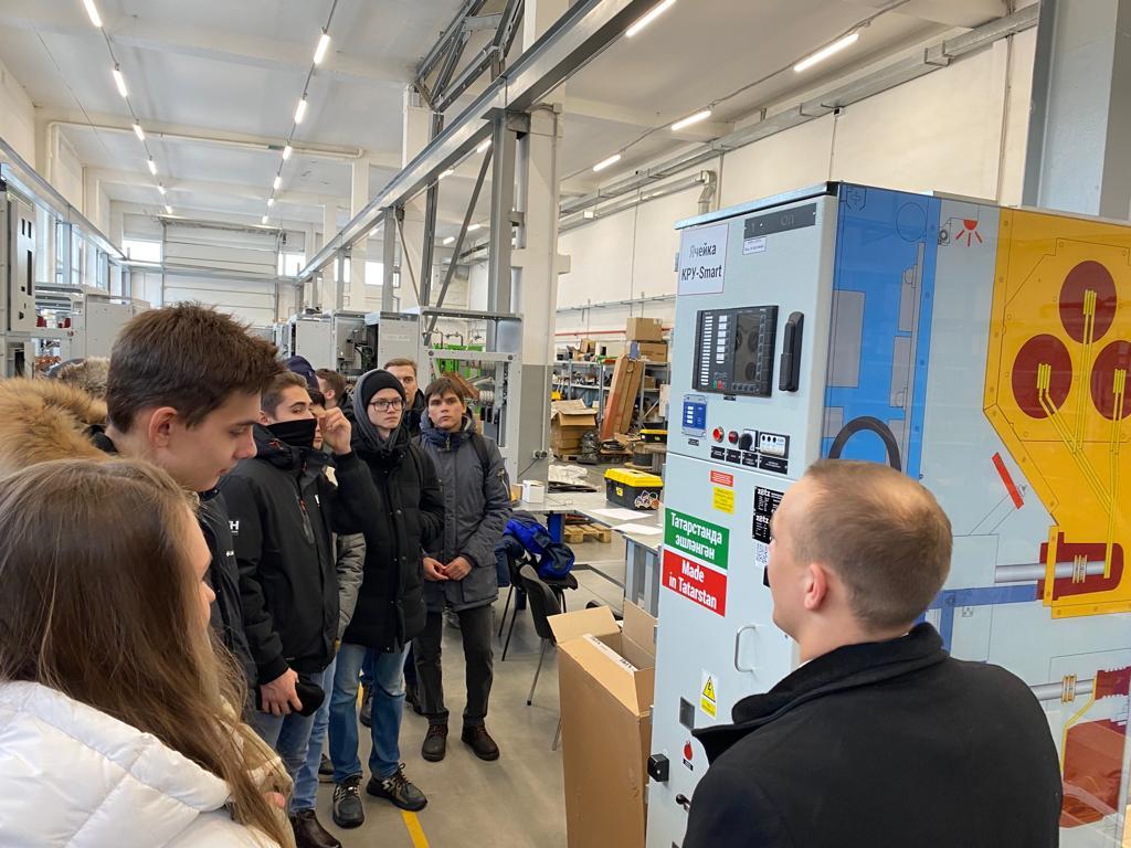 электротехнического оборудования Инженерного центра. Экскурсию провел руководитель проектов, выпускник кафедры ЭТКС - Айнур Назмиев.