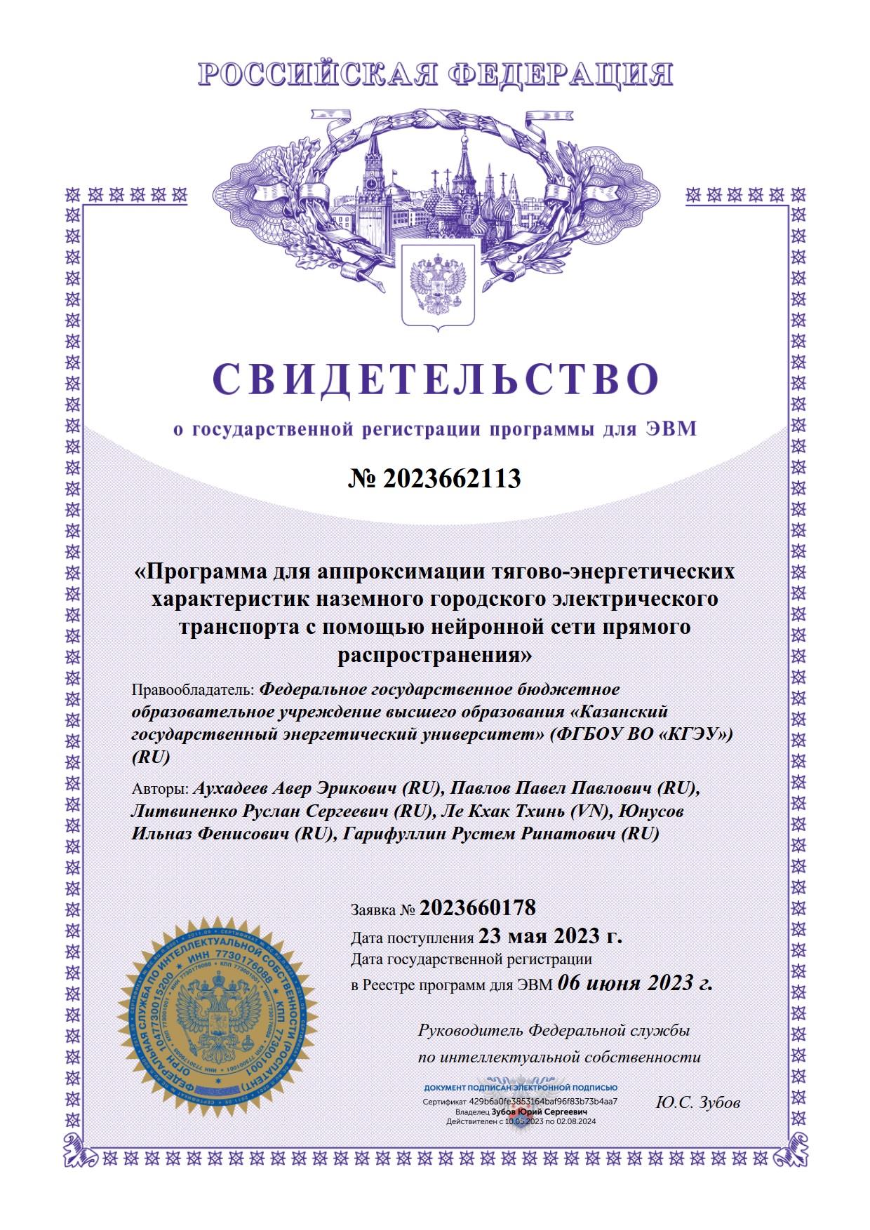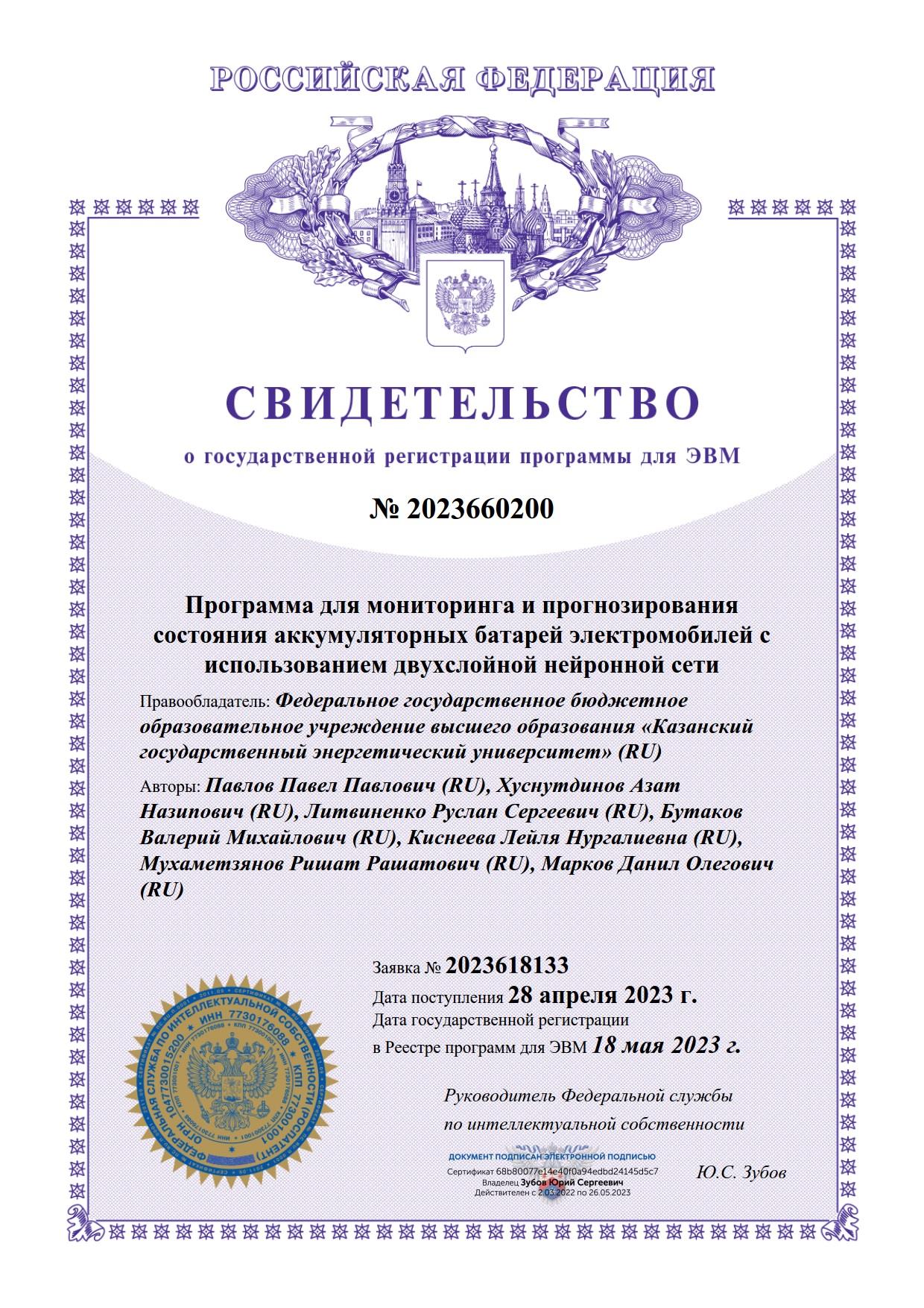 В рамках выполнения мероприятий стратегического проекта "Создание центра наукоемких технологий опережающего развития интеллектуального электротранспорта и зарядной инфраструктуры" коллективом кафедры разработаны програмные продукты на которые получены авторские свидетельства. Результаты получены при финансовой поддержке Минобрнауки и Минцифра России в рамках реализации программы стратегического академического лидерства «Приоритет-2030»