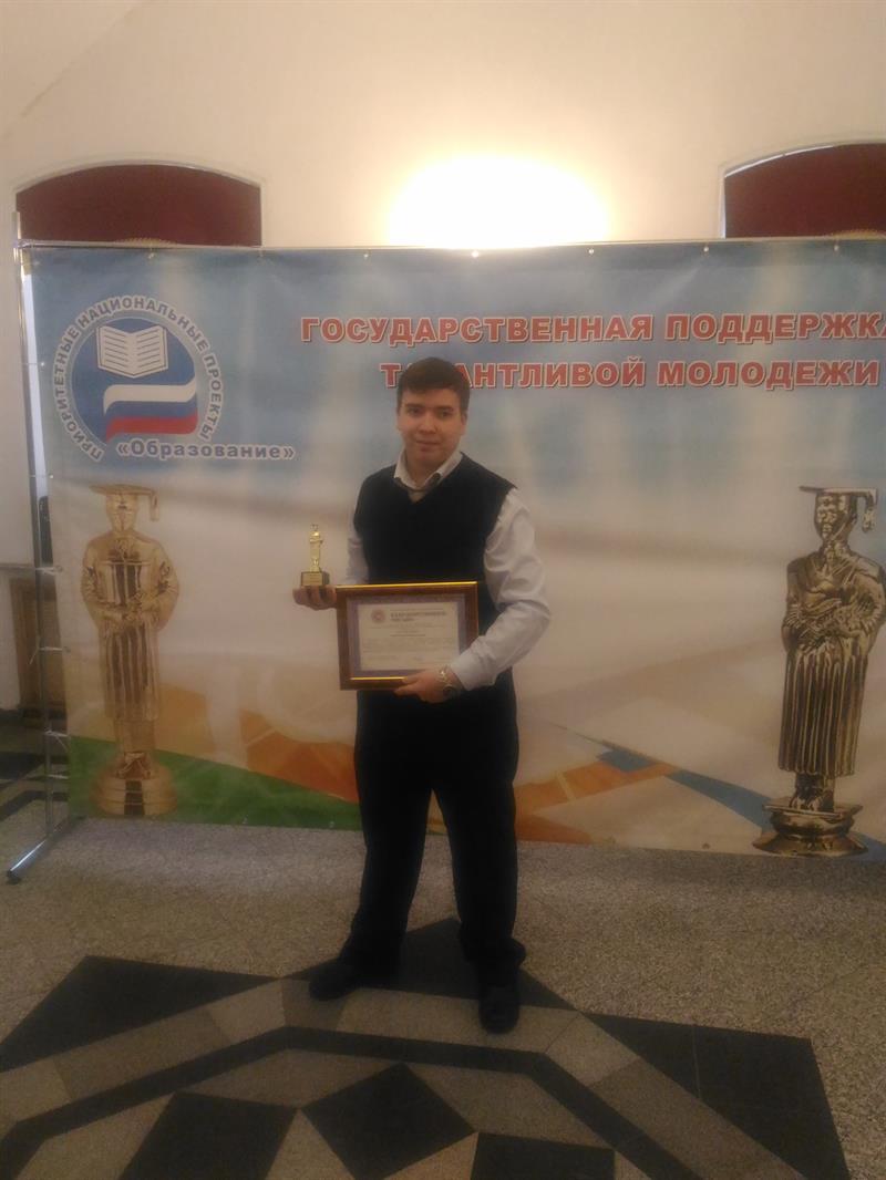Студент нашего университета Абдуллин Дамир (гр. ЭЭТ-3-15) стал лауреатом премии Президента Российской Федерации по поддержке талантливой молодежи. Его победа во Всероссийском конкурсе «Моя страна –моя Россия» стала действительно значимой для нашего университета. Название нашего ВУЗа звучала в Министерстве транспорта РФ, в Общественной палате РФ и в Государственной думе РФ, что конечно очень важно и способствует положительному имиджу КГЭУ за пределами Республики Татарстан. Его наставниками являются доценты кафедры «Электротехнические комплексы и системы» Хизбуллин Роберт Накибович и Аухадеев Авер Эрекович, которые внесли значимый вклад в победу нашего студента.