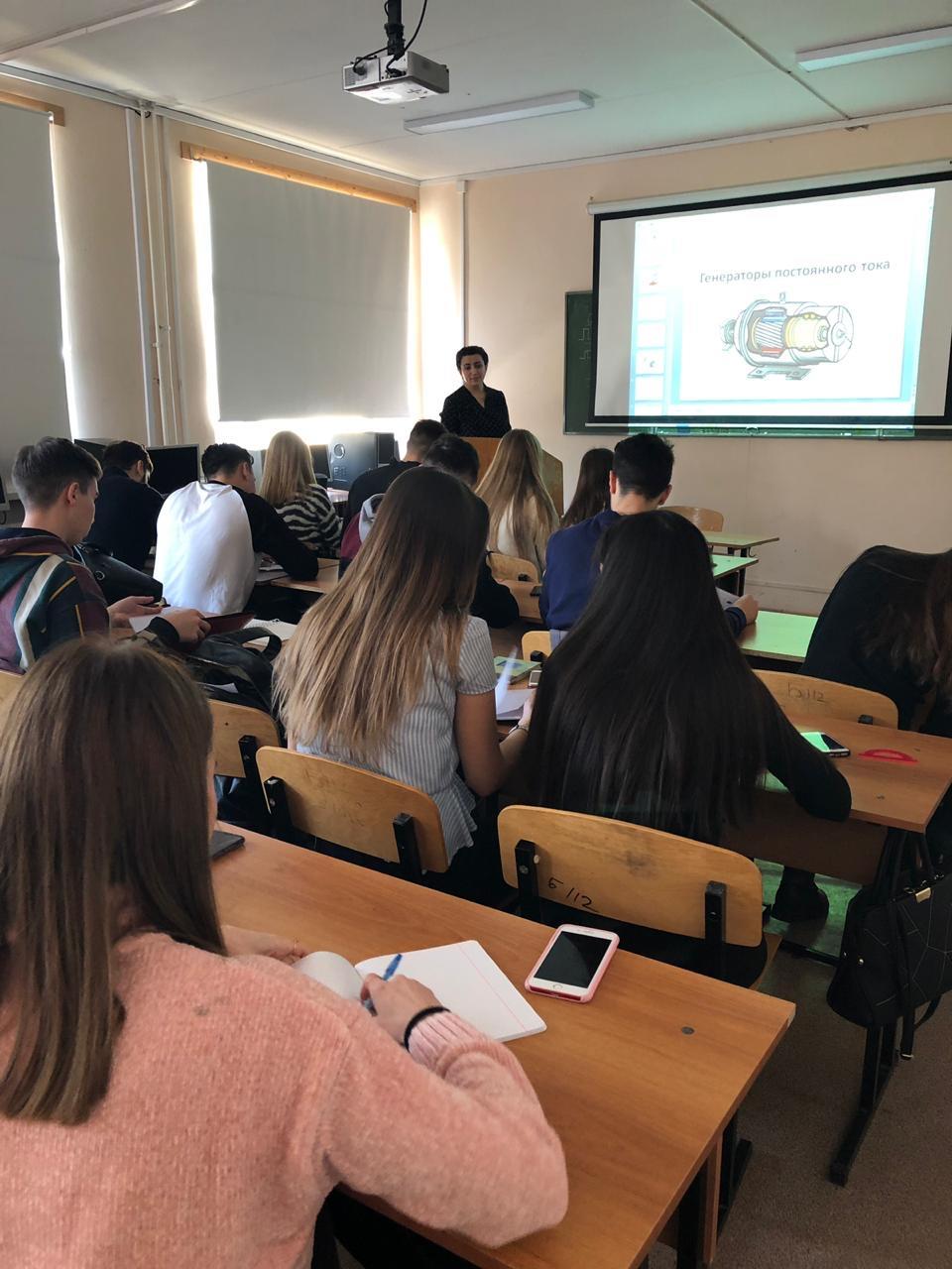 20 сноября 2019 г. ст. преподаватель кафедры ЭТКС Киснеева Л.Н. провела открытое занятие для группы ЭП-1-17 по дисциплине "Электрические машины" на тему: "Генератор постоянного тока".