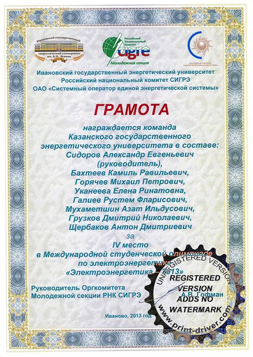 В ноябре 2013 года команда КГЭУ приняла участие в Международной студенческой олимпиаде по электроэнергетике "Электроэнергетика - 2013" проходившей в Ивановском государственном энергетическом университете, заняла IV место.